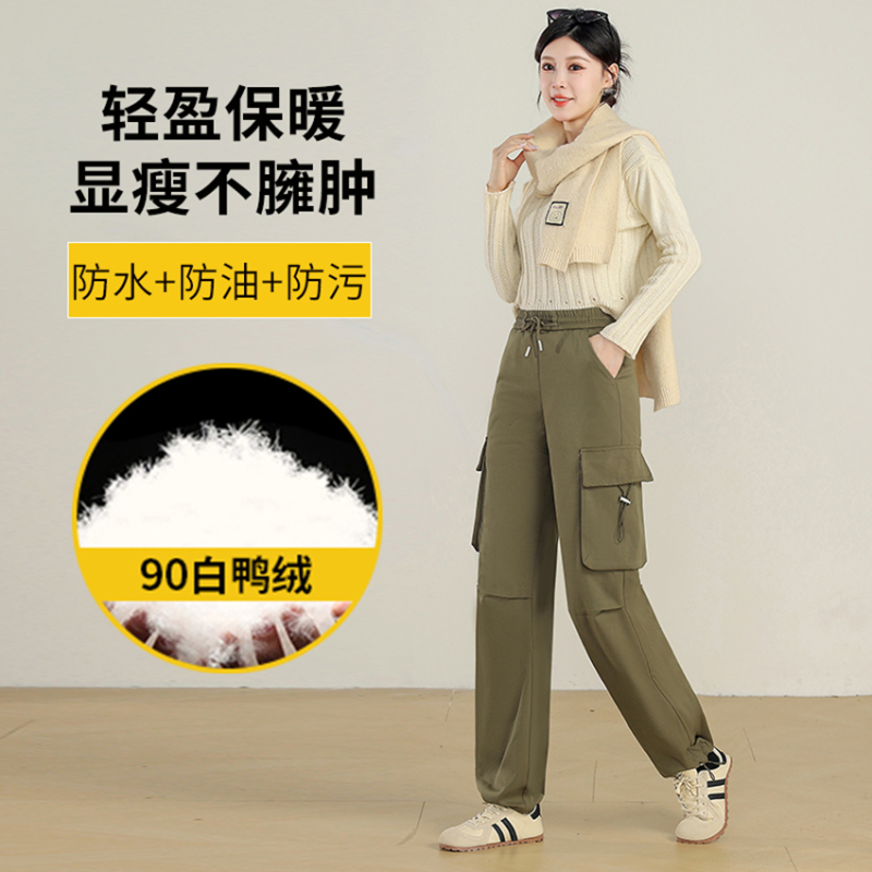 2025新款冬季加厚保暖羽绒工装裤女洋气减龄休闲百搭显瘦直筒裤子