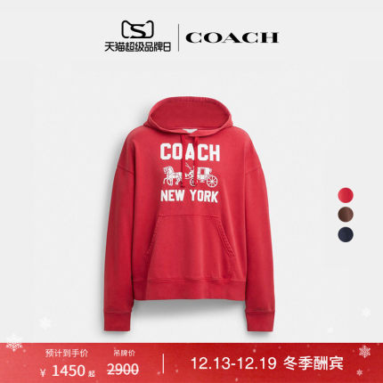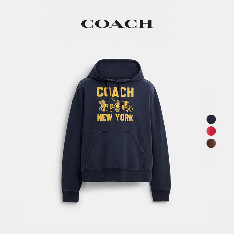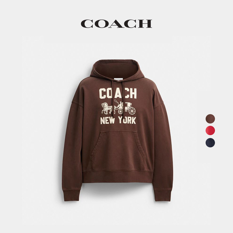 COACH/蔻驰男女同款马车图案连帽卫衣宽松舒适休闲高级感