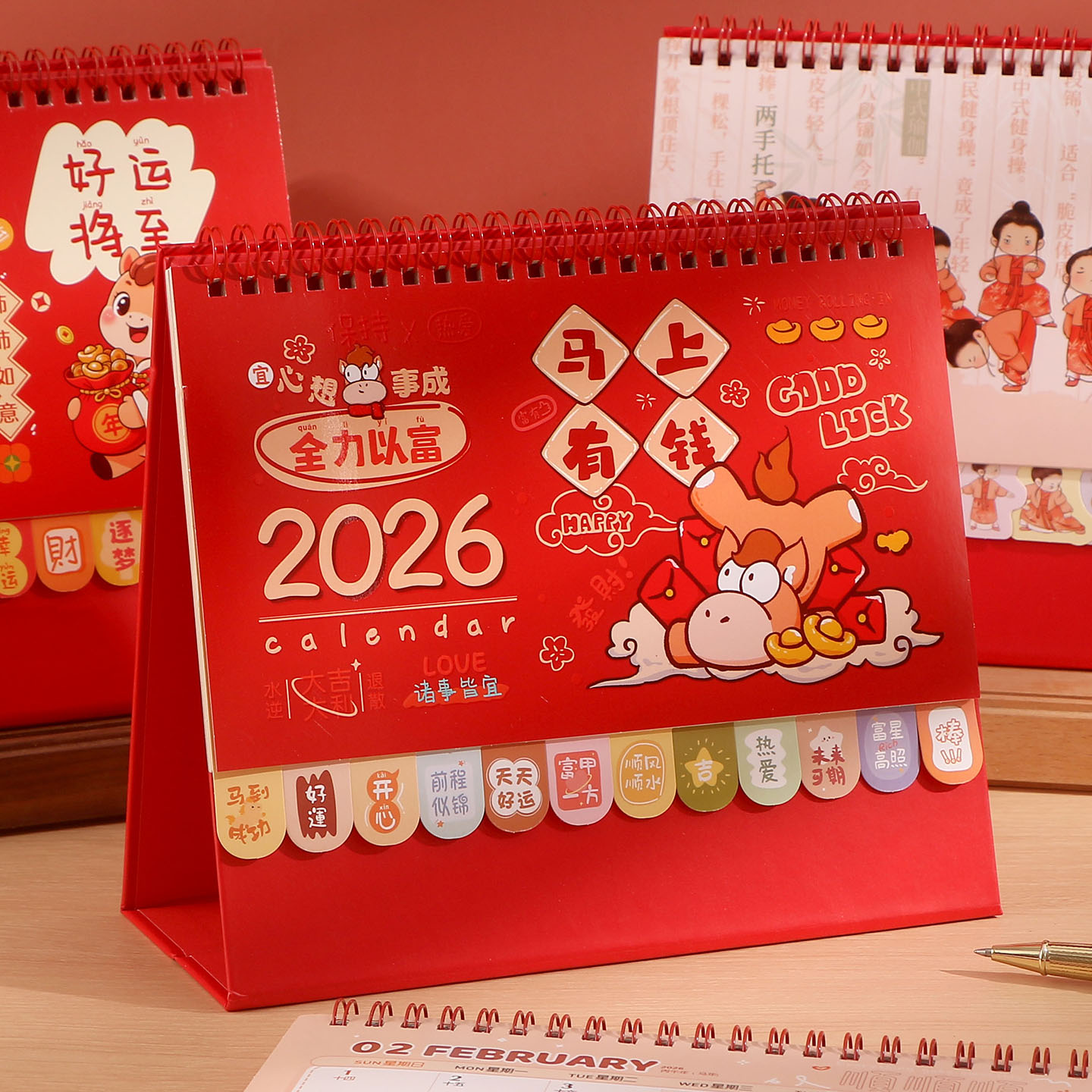 2026年台历日历定制做卡通办公创意简约小清新可爱桌面精致摆件计划本打卡ins工作记事新年马年月历logo印刷