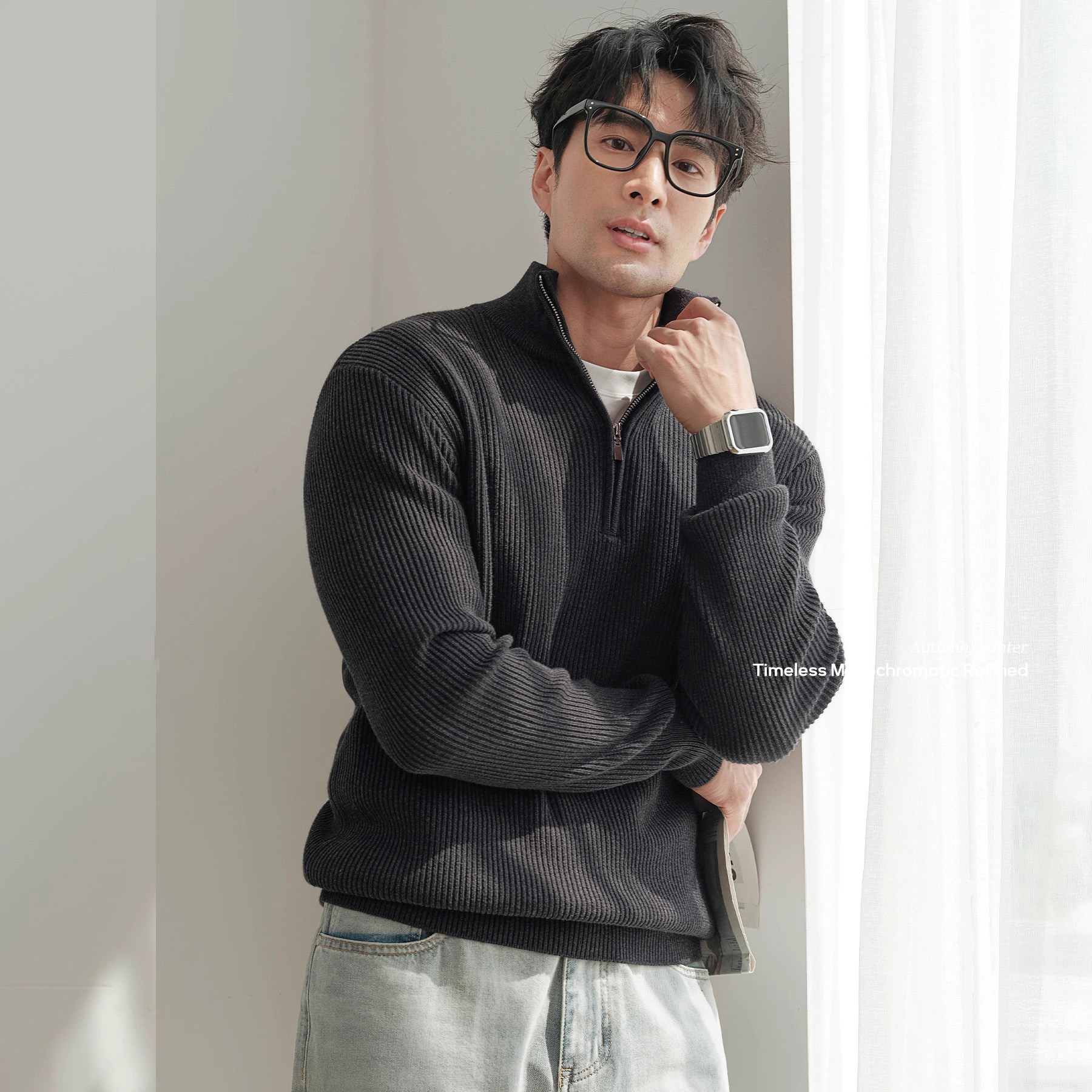 半拉链针织衫衫男秋冬针织毛衣半拉链厚重感立领外套半高领男士衣