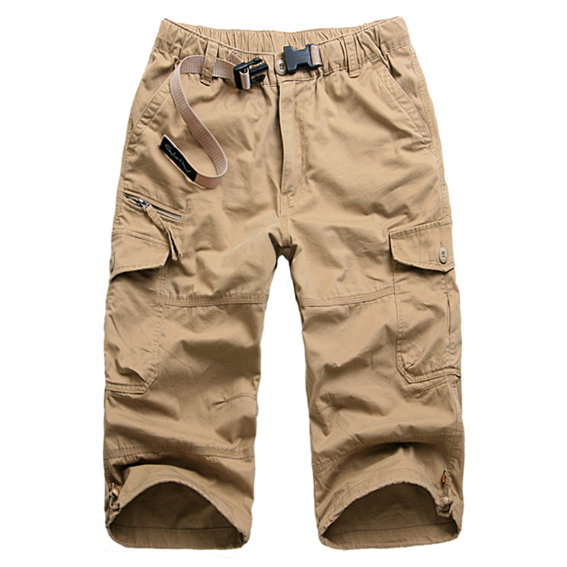夏季休闲七分裤工装短裤男裤纯棉薄款宽松大码中青年多口袋中裤子