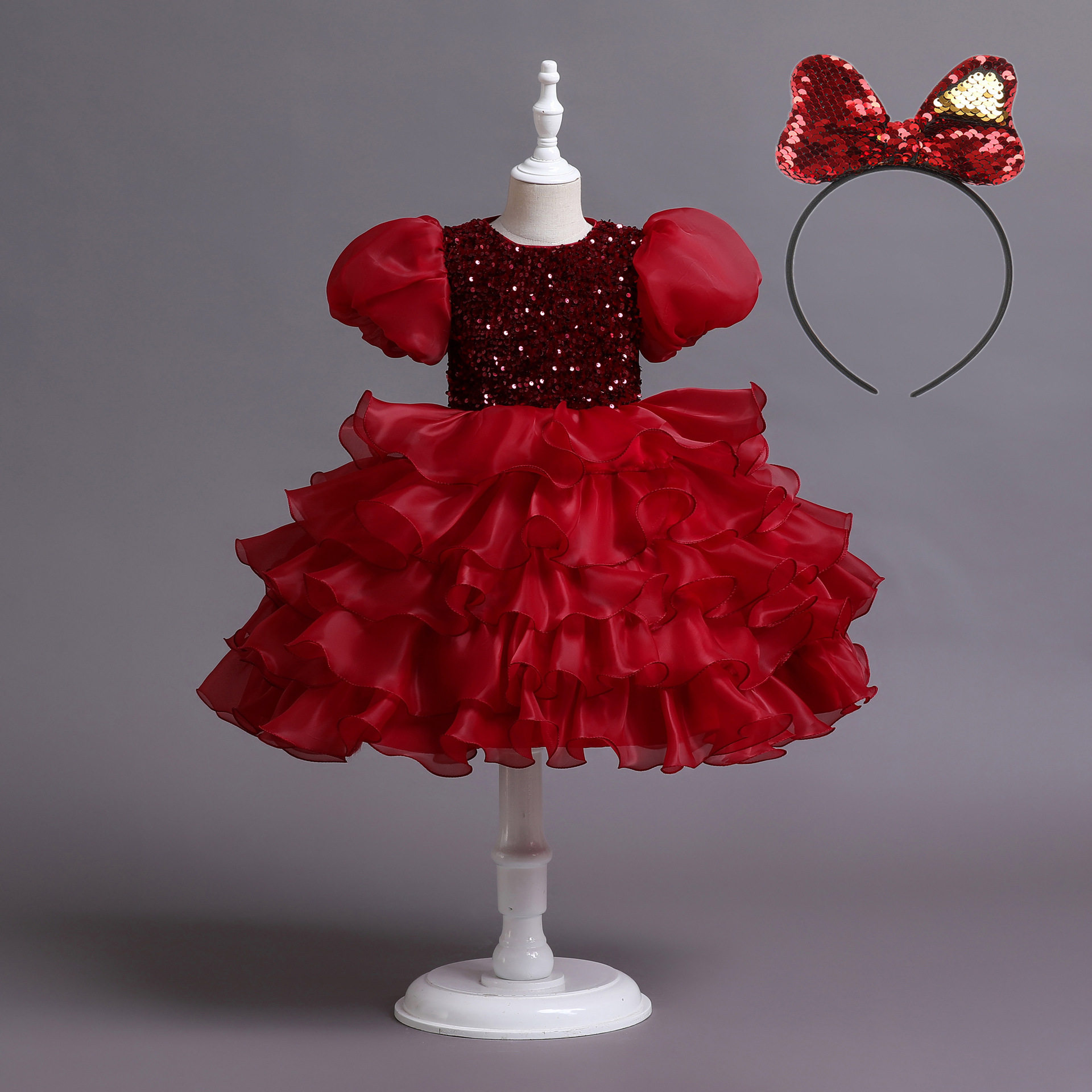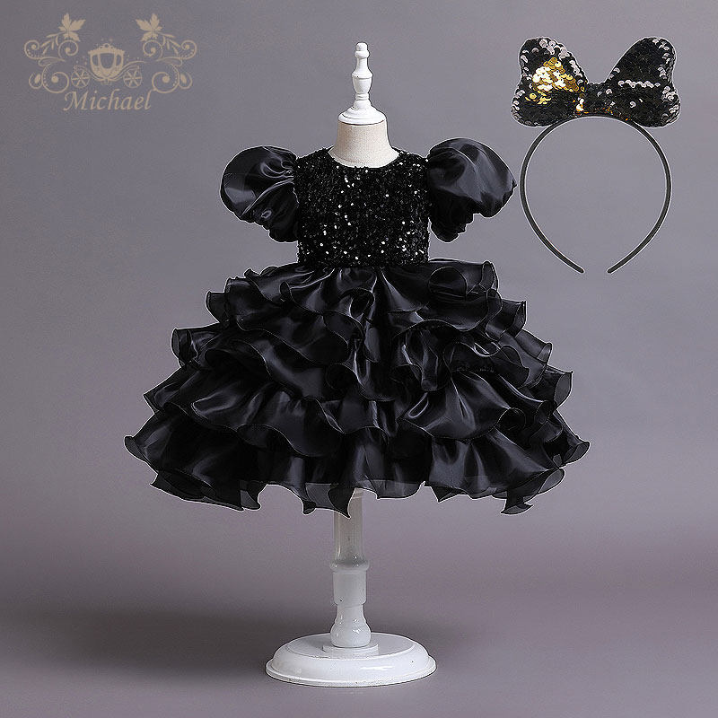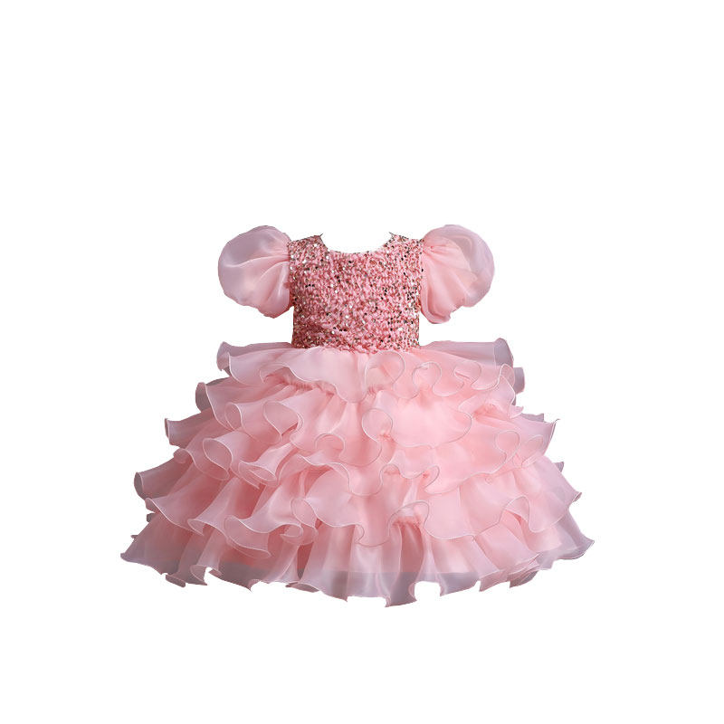 2024新款女童蛋糕裙礼服裙公主蓬蓬连衣裙生日亮片走秀舞蹈演出裙