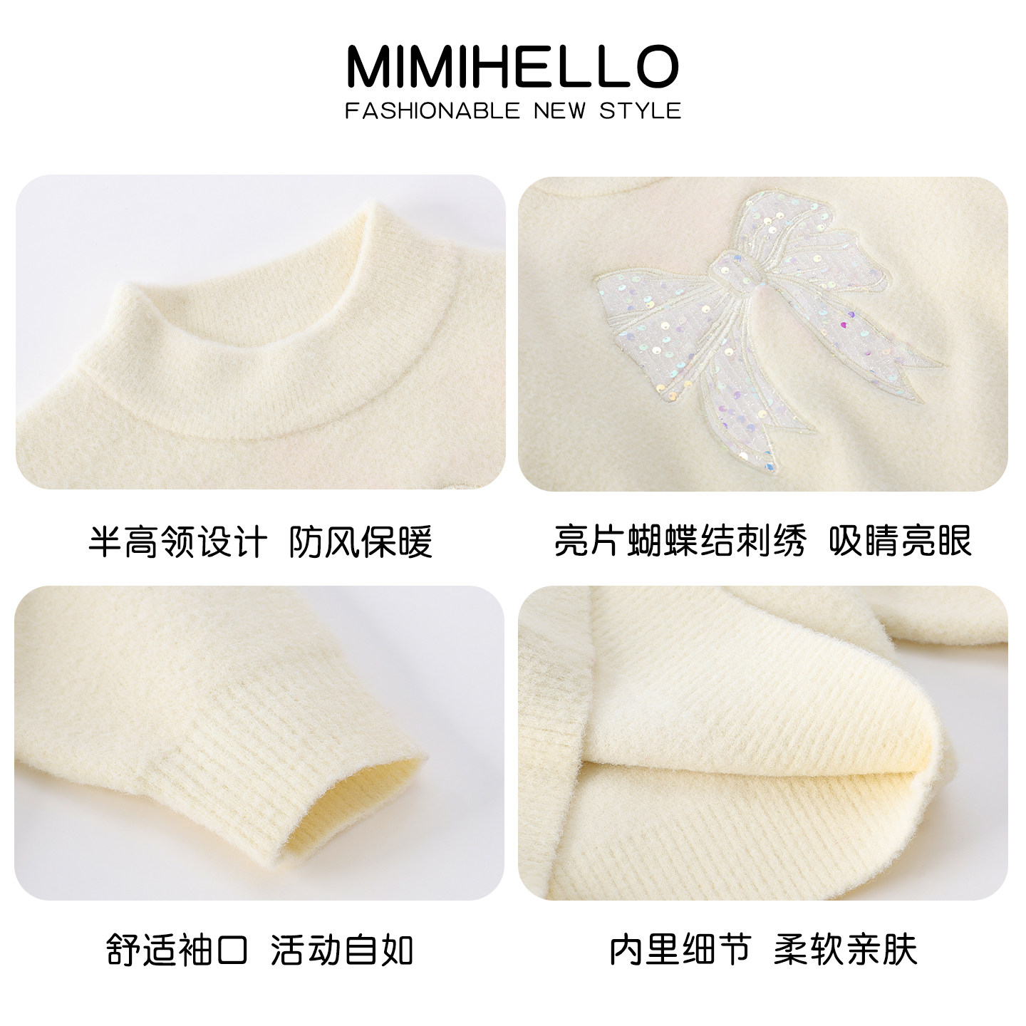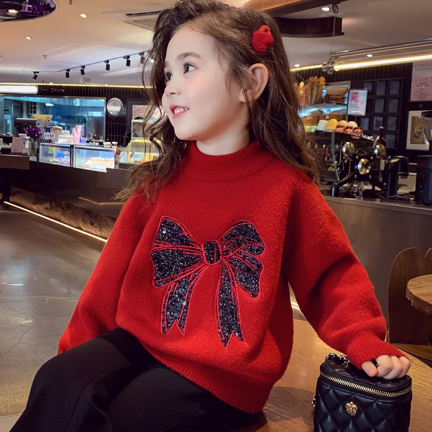 女童亮片蝴蝶结红色毛衣