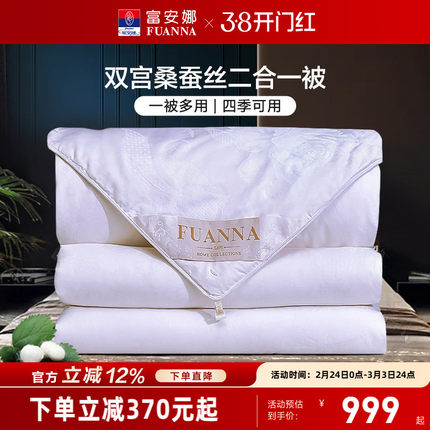 富安娜双宫茧桑蚕丝被冬被子母二合一被纯棉春秋空调被子四季被芯