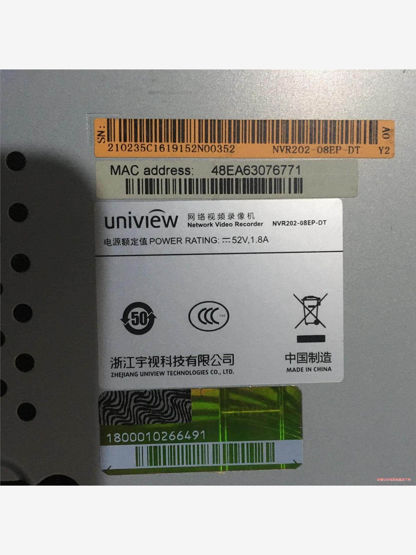 宇视科技 NVR208-08EP-DT 硬盘录像机 8路PO(议价商品)