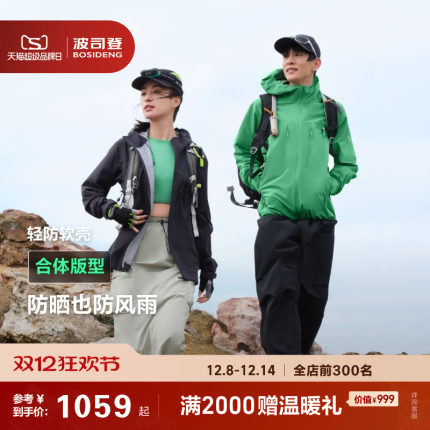 波司登秋新款冲锋衣软壳女户外徒步防风夹克防晒衣外套男女工装