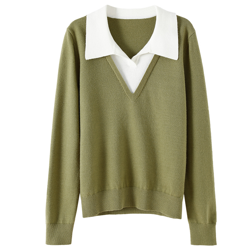 OSA欧莎草甸绿假两件Polo领针织衫女2025年春季叠穿内搭毛衣上衣