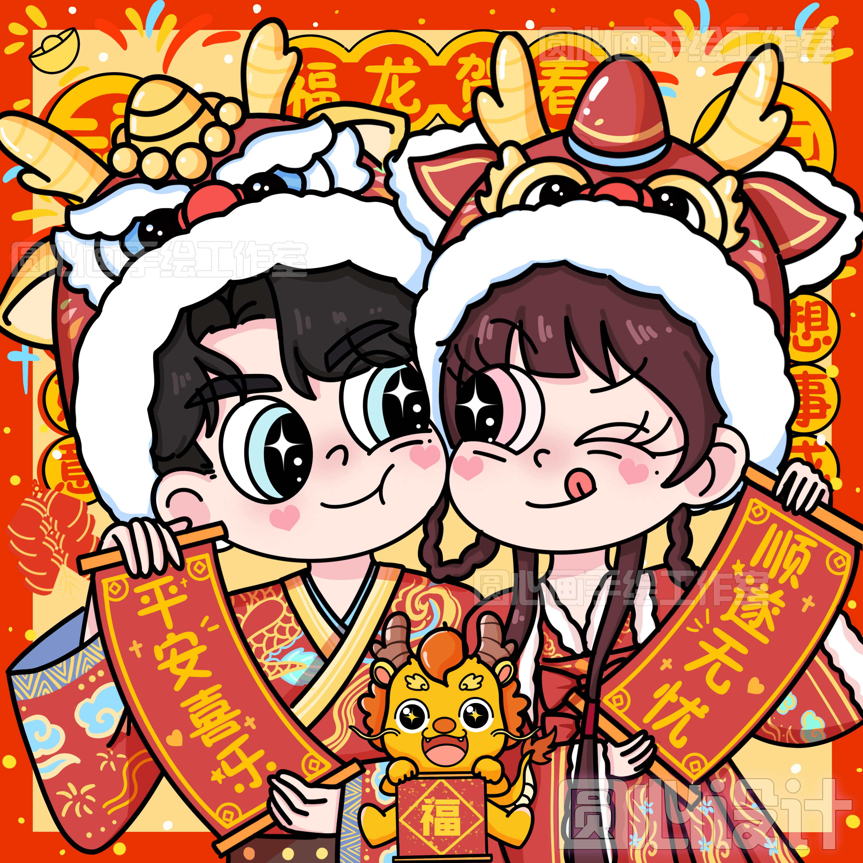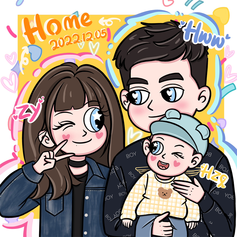 星蝶公主手绘头像定制画像q版情侣漫画风卡通形象设计装饰画绘画