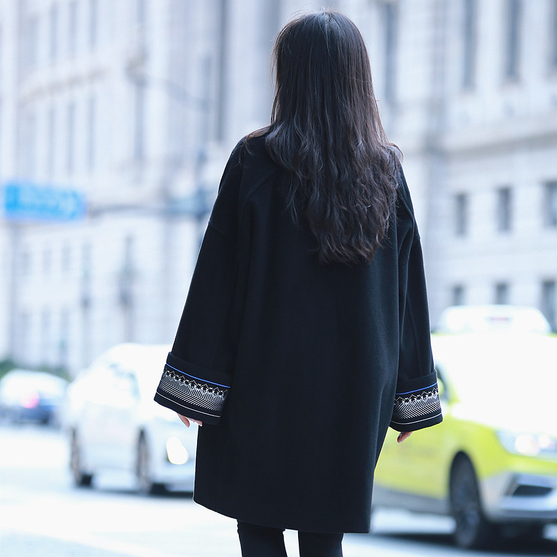 重工刺绣羊绒羊毛中长款毛呢大衣