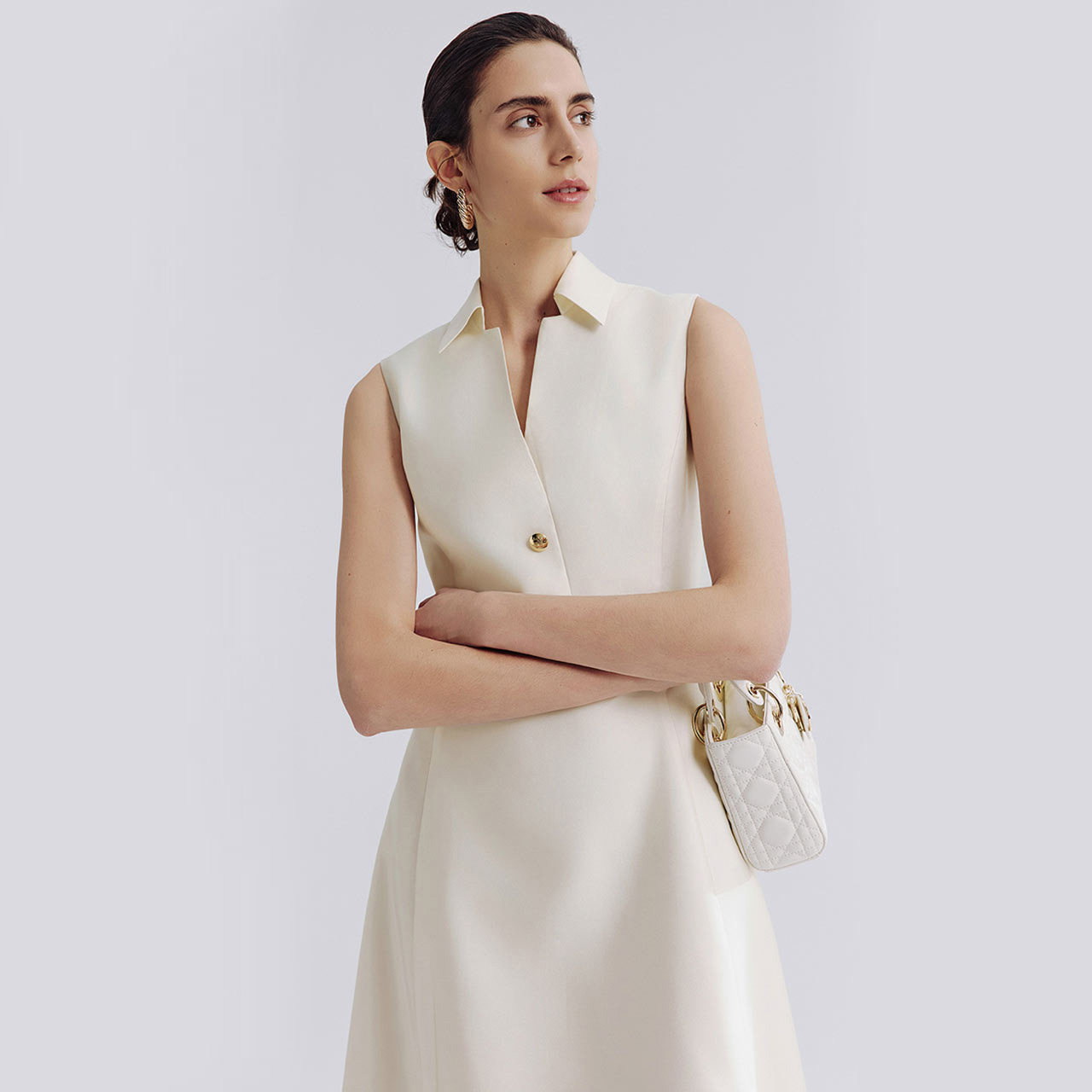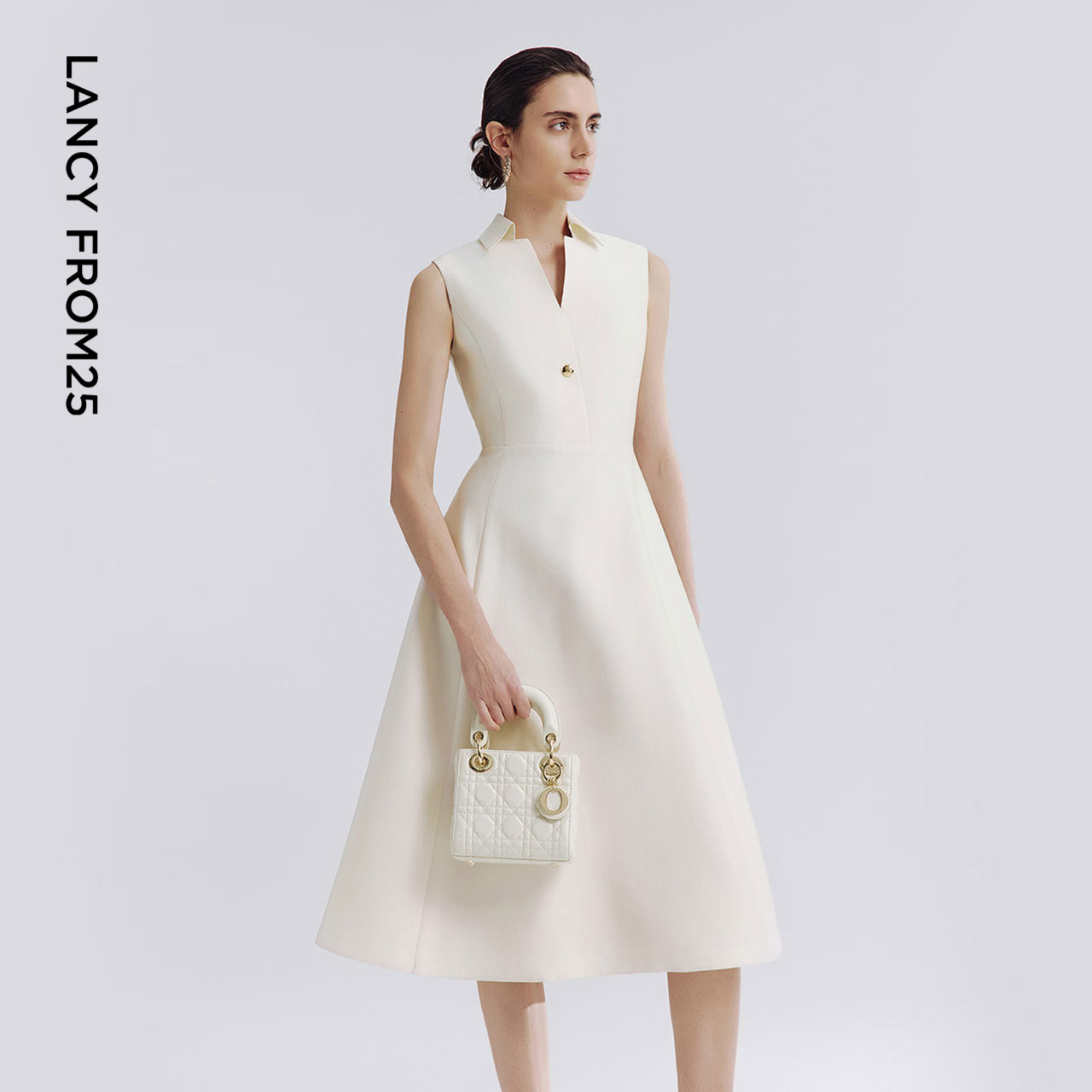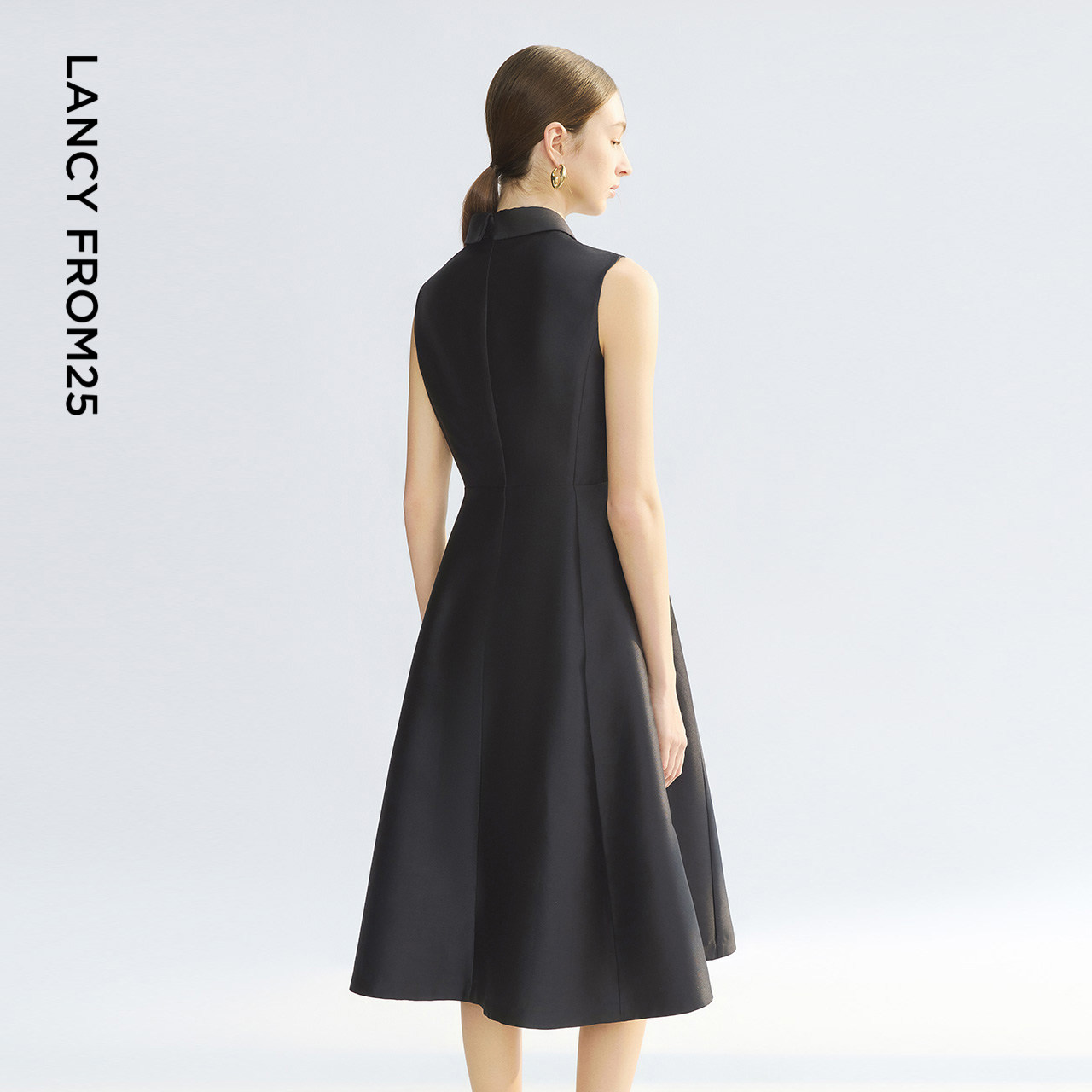 【焦点系列】朗姿2025年夏季新款法式高腰无袖衬衫领气质连衣裙