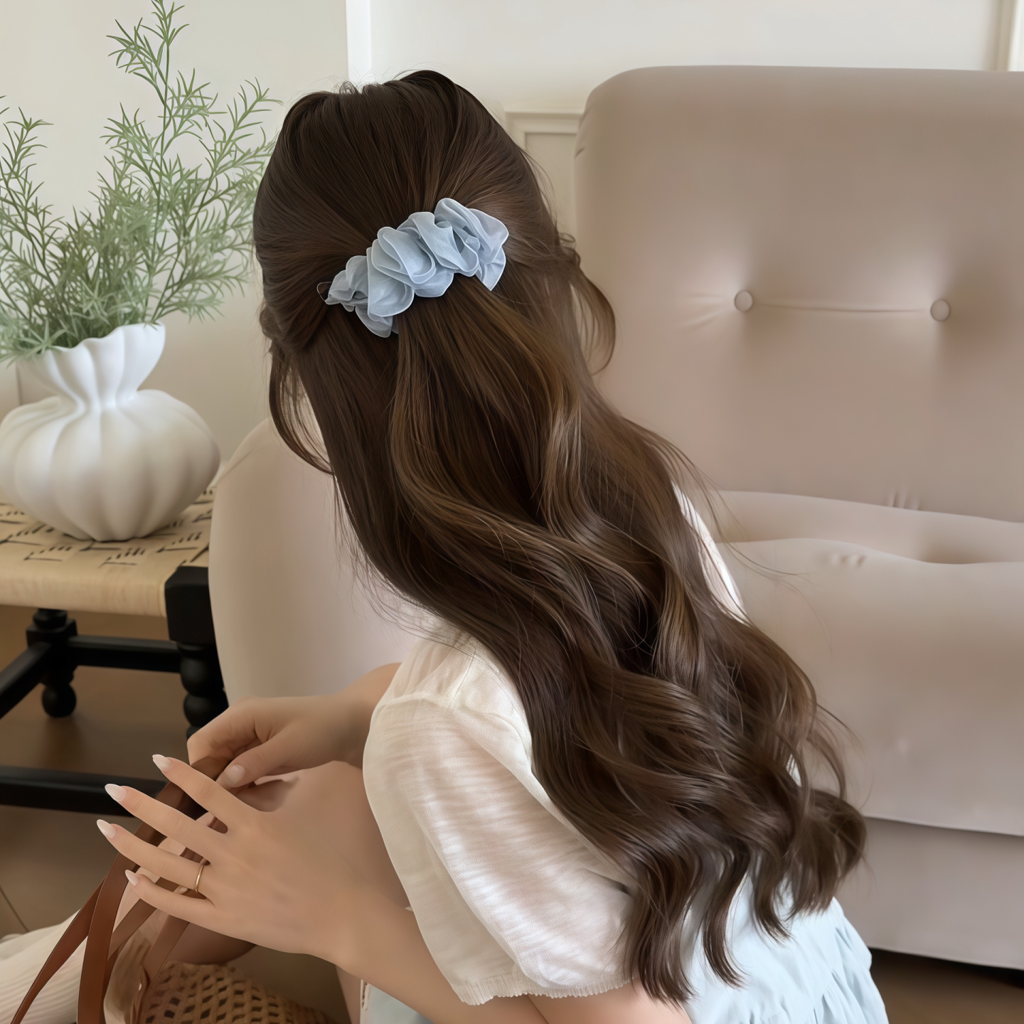黑色褶皱显发量香蕉夹女一字夹扭扭夹高马尾后脑勺盘发发夹子头饰