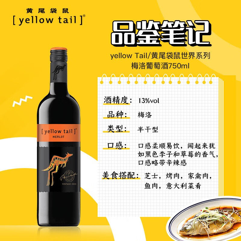 黄尾袋鼠 智利原瓶进口西拉梅洛加本力黑皮诺750ml*6瓶葡萄酒红酒