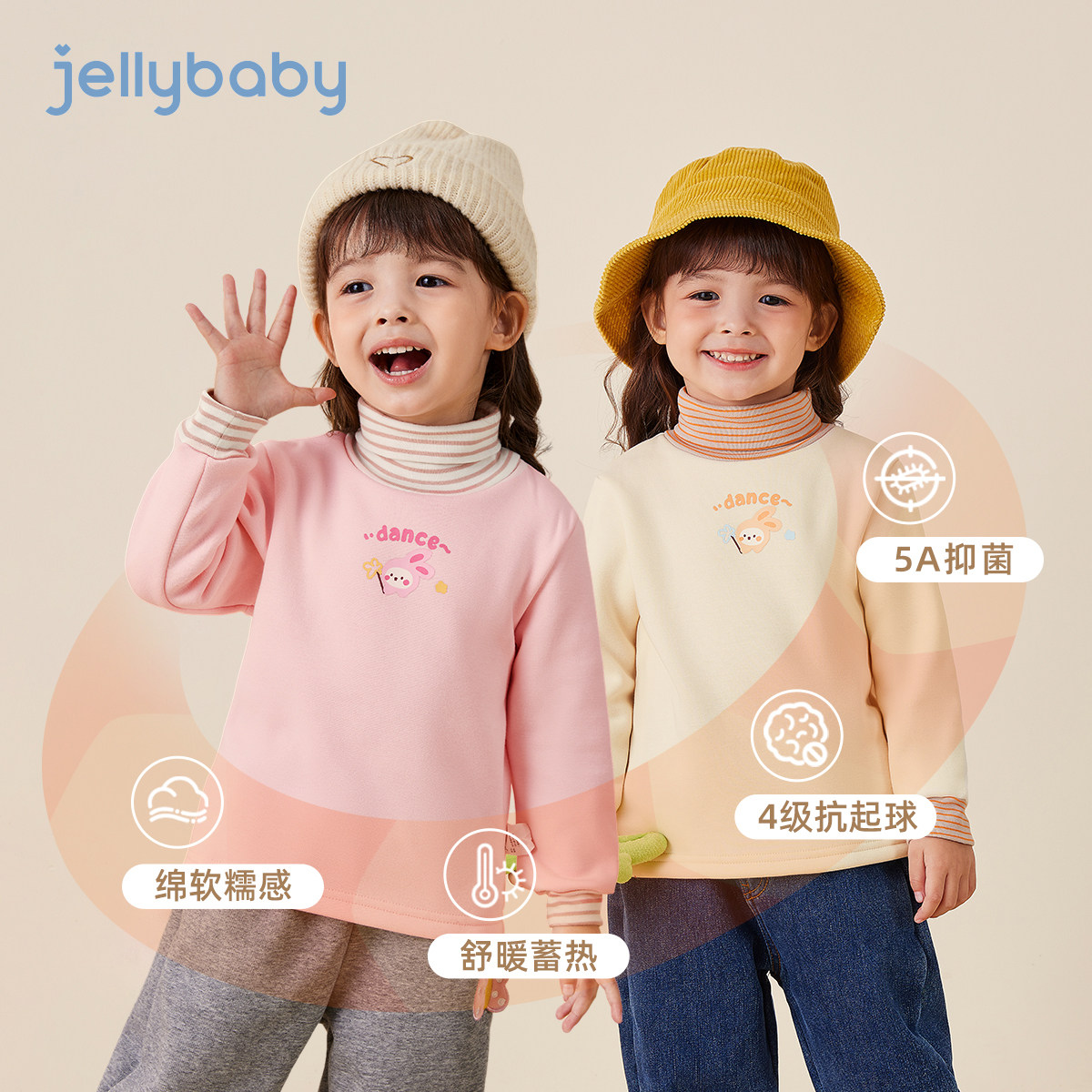 [抗静电抑菌]儿童长袖T恤秋冬女童高领宝宝加绒男童红色打底衫