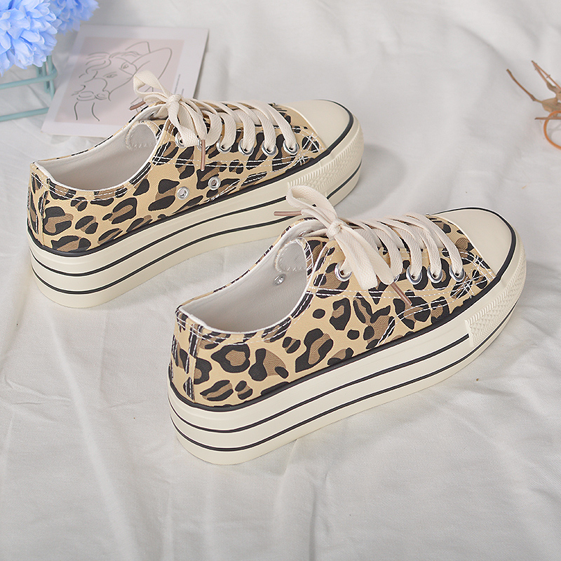 低帮豹纹个性潮流松糕厚底帆布鞋