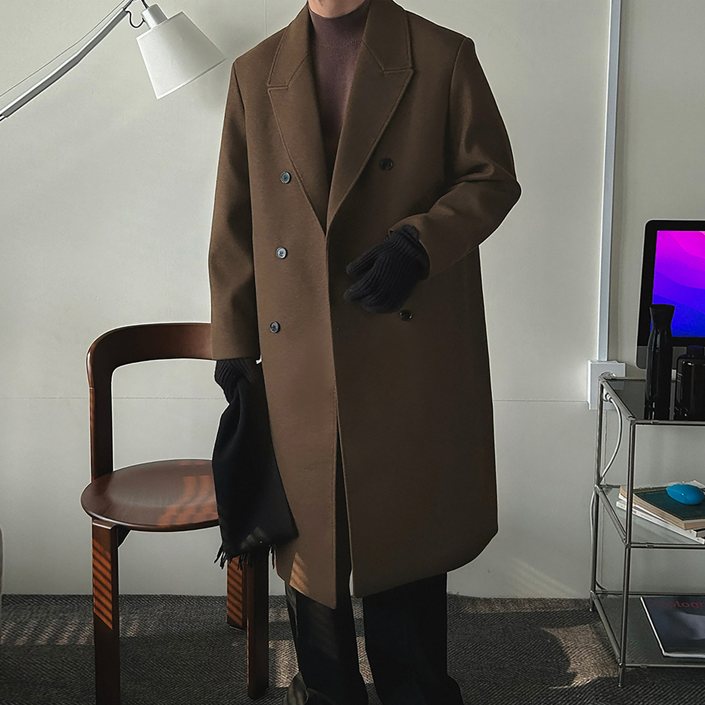 LOOKNFIT秋冬毛呢大衣男士中长款韩版保暖双排扣宽松时尚呢子外套