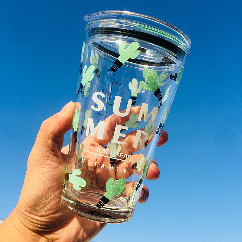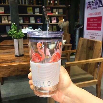 少女心吸管带盖学生早餐杯