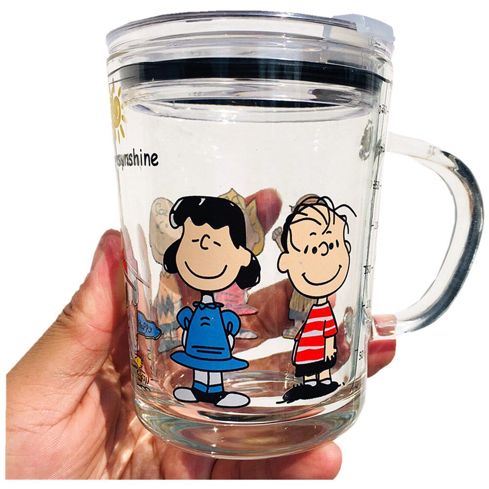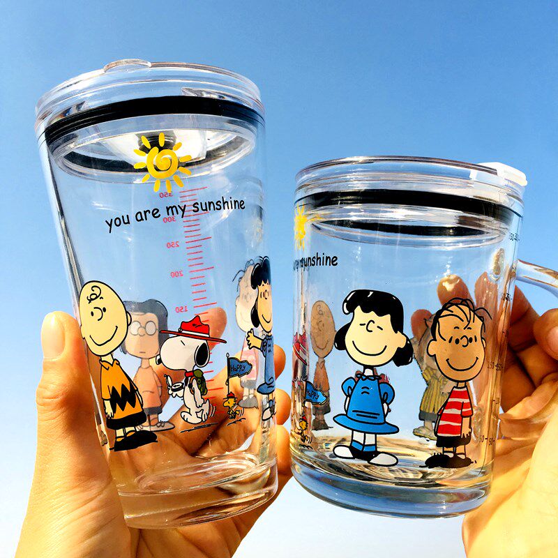 少女心ins风史努比吸管玻璃杯带盖大容量可爱学生早餐杯家用水杯