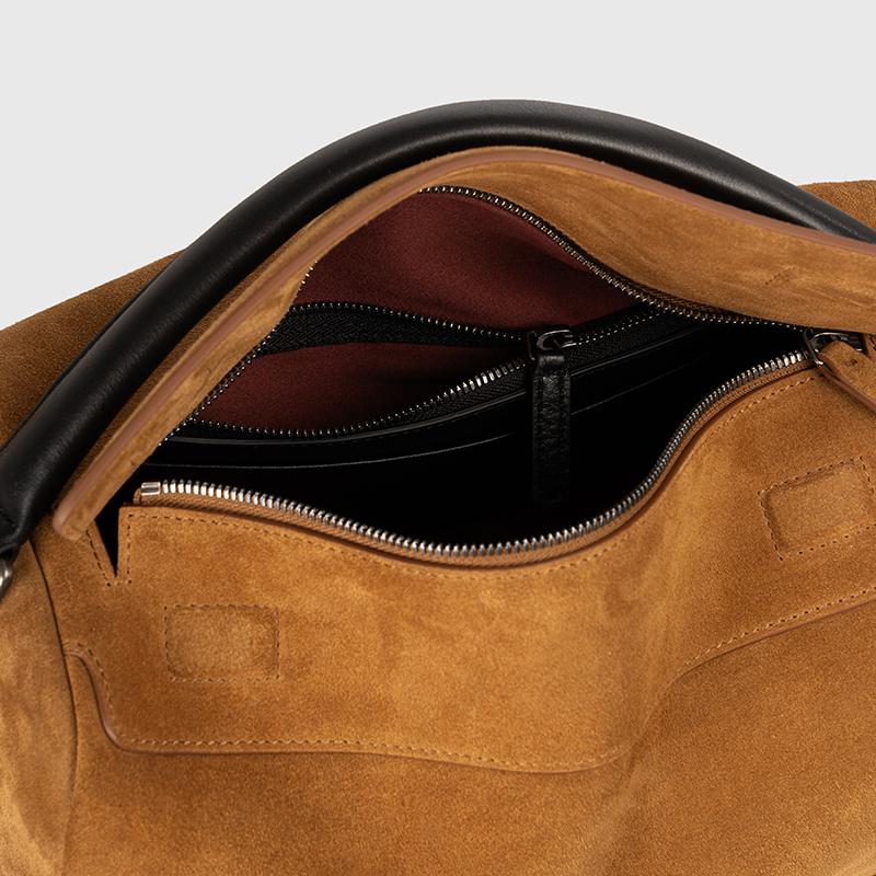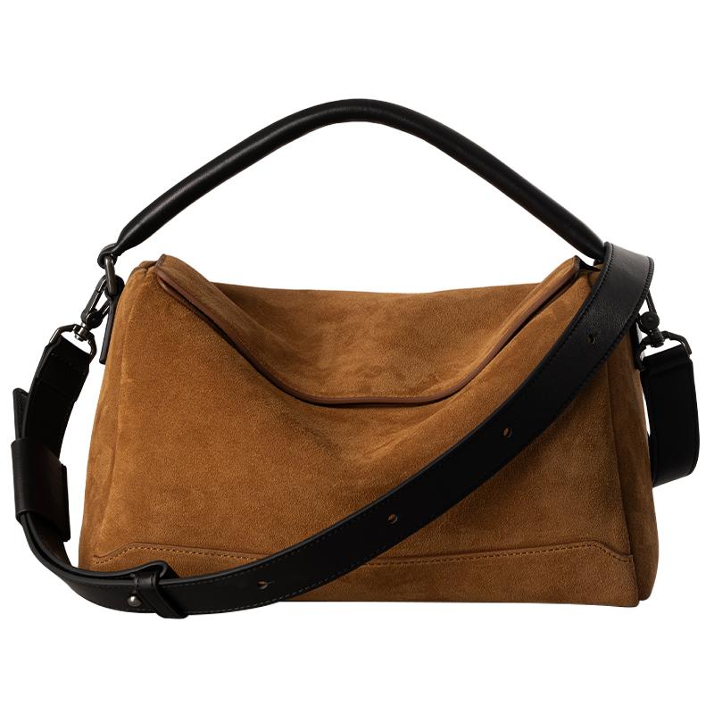 吉卡尼 斜挎包美拉德麂皮复古休闲拉链男包大容量单肩手提通勤包