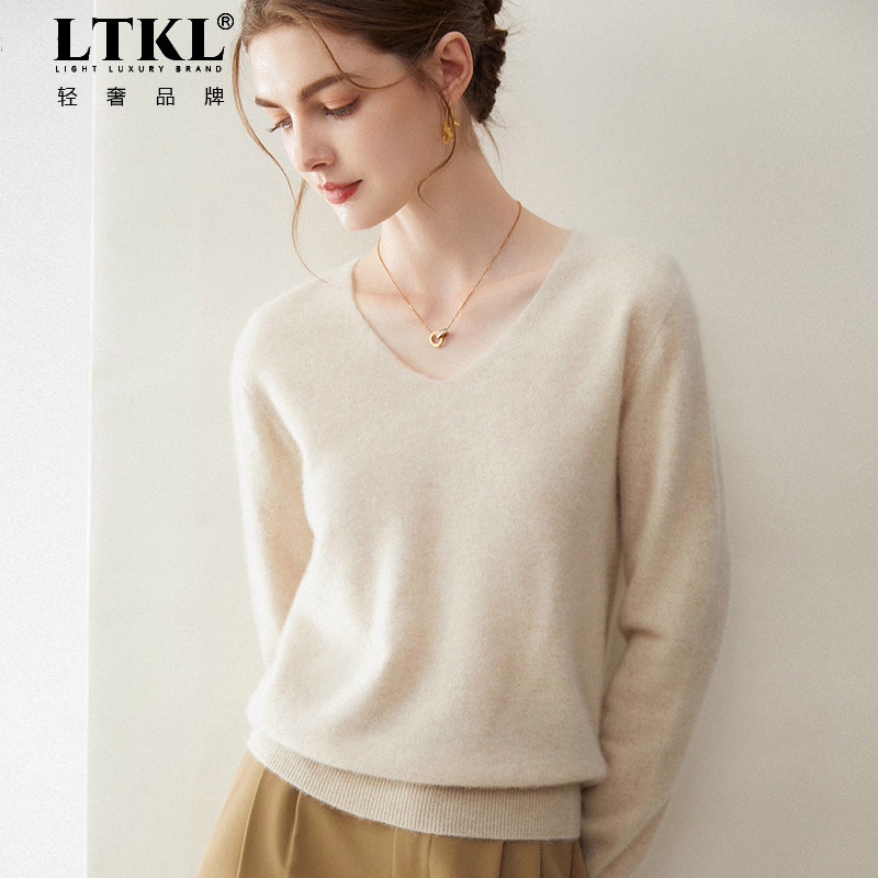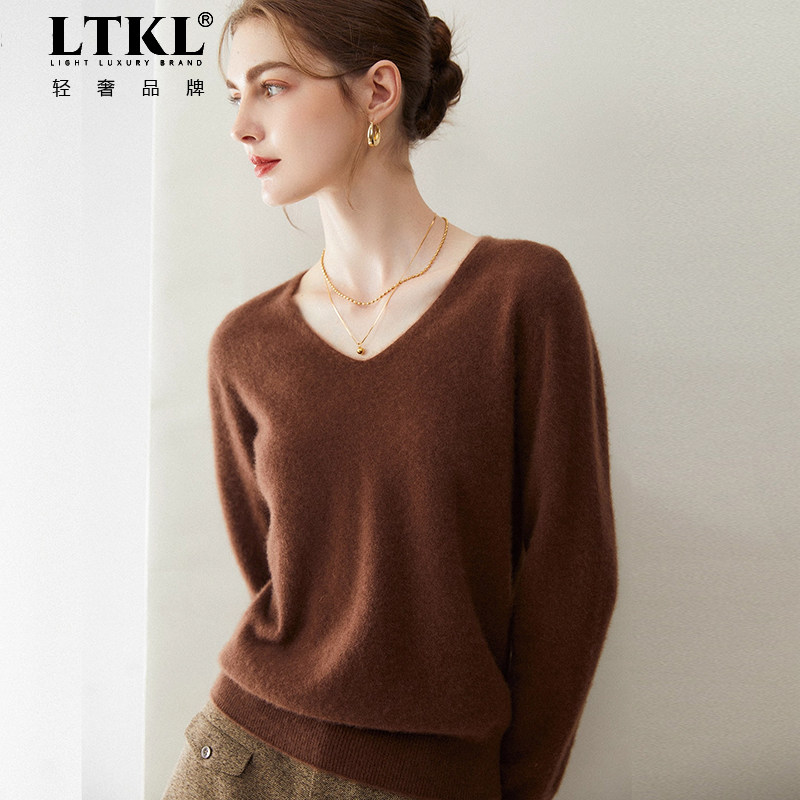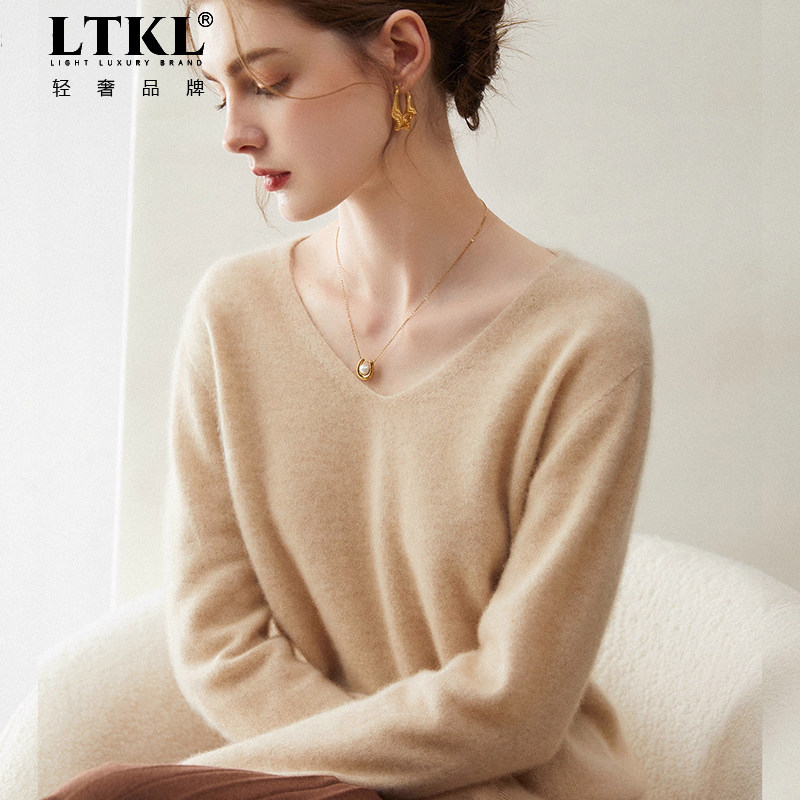 鄂尔多斯市100%纯山羊绒衫女V领秋冬无缝针织衫正品打底羊绒毛衣