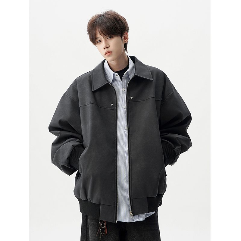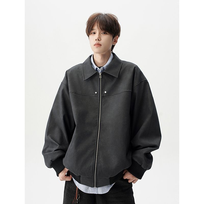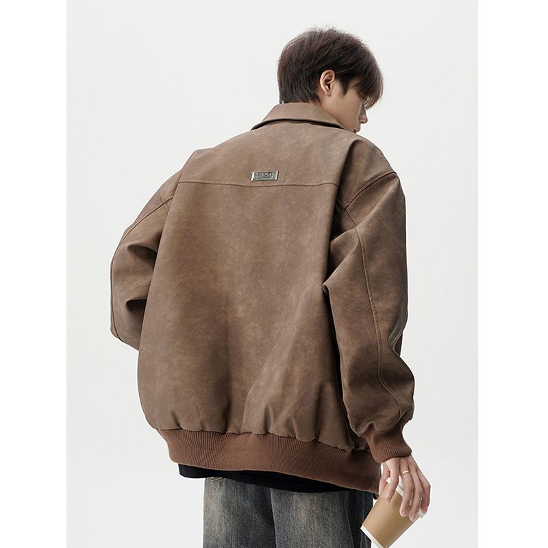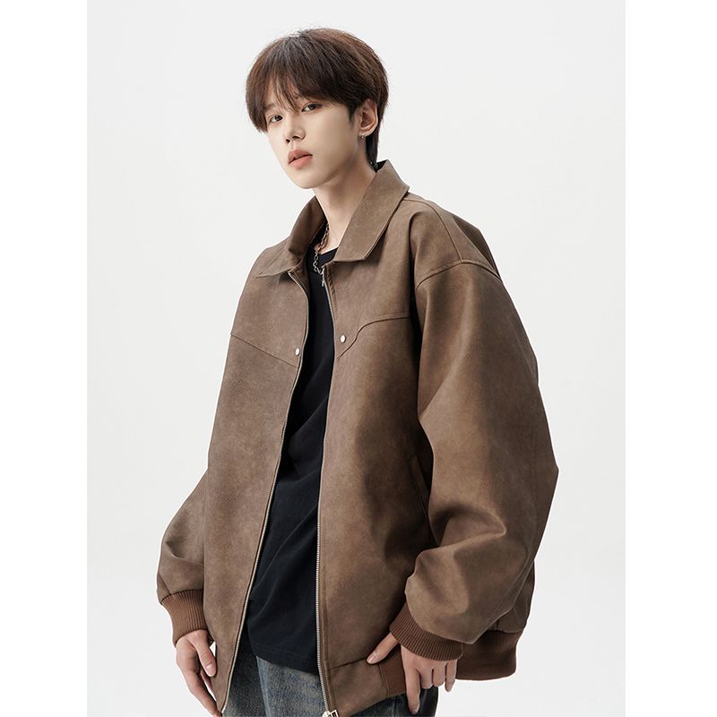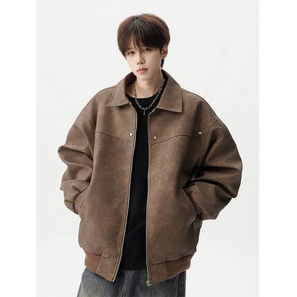 休闲时尚新款小众夹克外套潮流男款皮衣外套美式复古宽松上衣