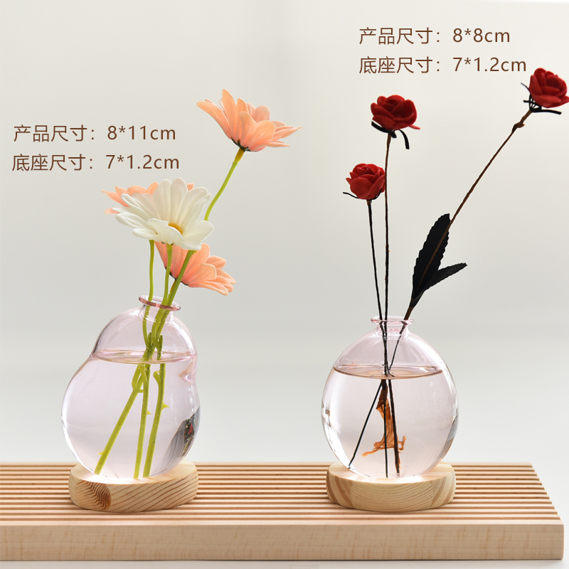 创意泡泡花瓶透明粉色玻璃花瓶水培插花器餐桌装饰香薰瓶摆件