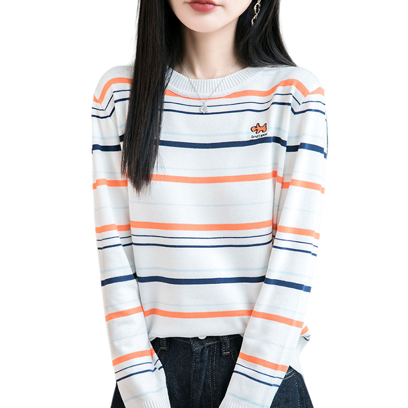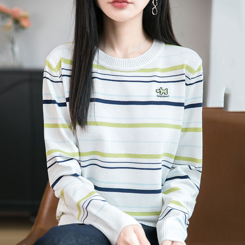 撤柜撤标彩条刺绣针织打底衫女春秋洋气上衣大码女装秋冬毛衣