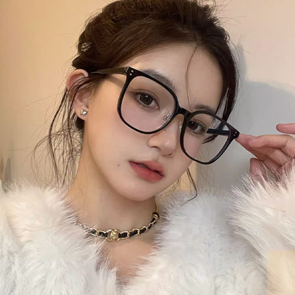 早八素颜黑框近视眼镜女可配度数大框显脸小防蓝光带鼻托眼镜框男