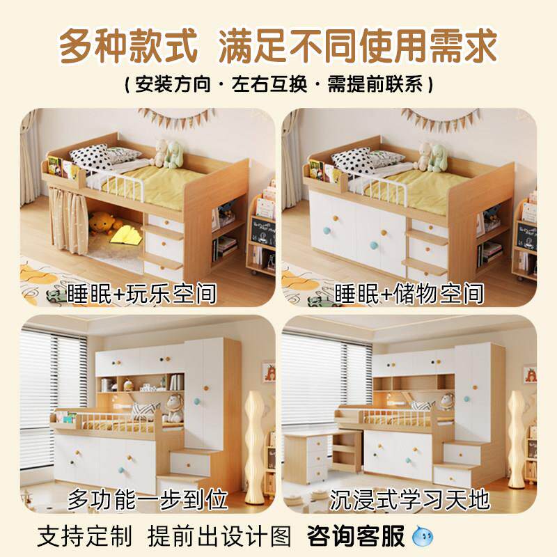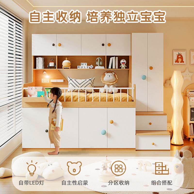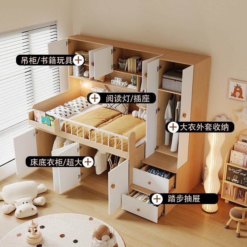 茁豪家居多功能组合榻榻米实木儿童半高床男孩女孩书桌衣柜收纳床