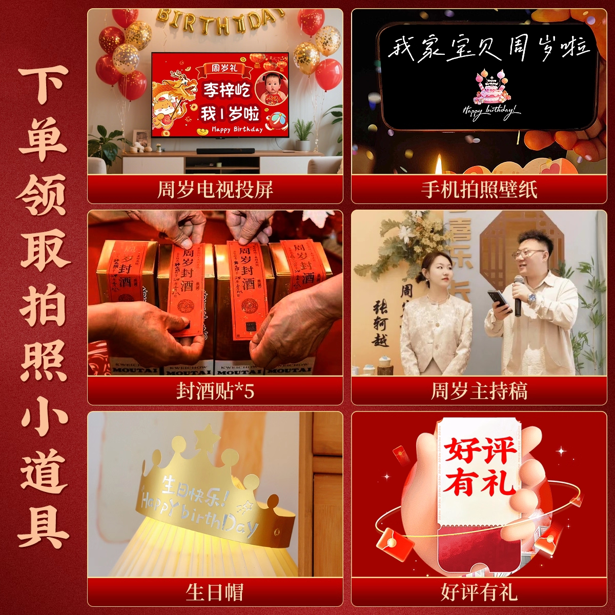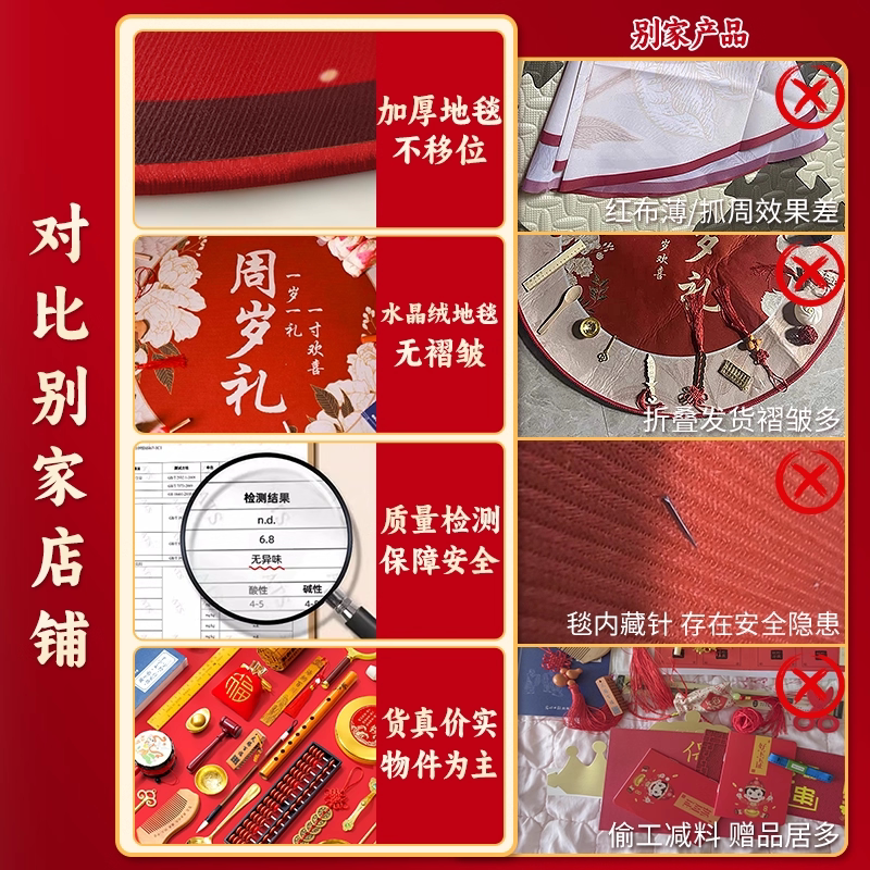 抓周道具用品一周岁布置全套装宝宝婴儿生日家庭版抓阄礼仪式摆件
