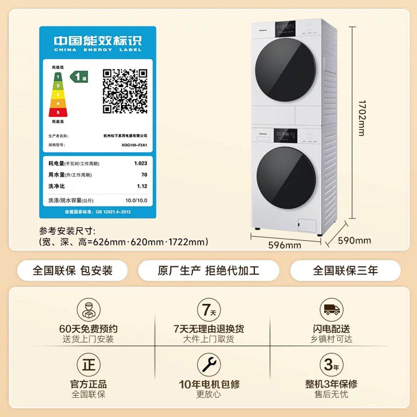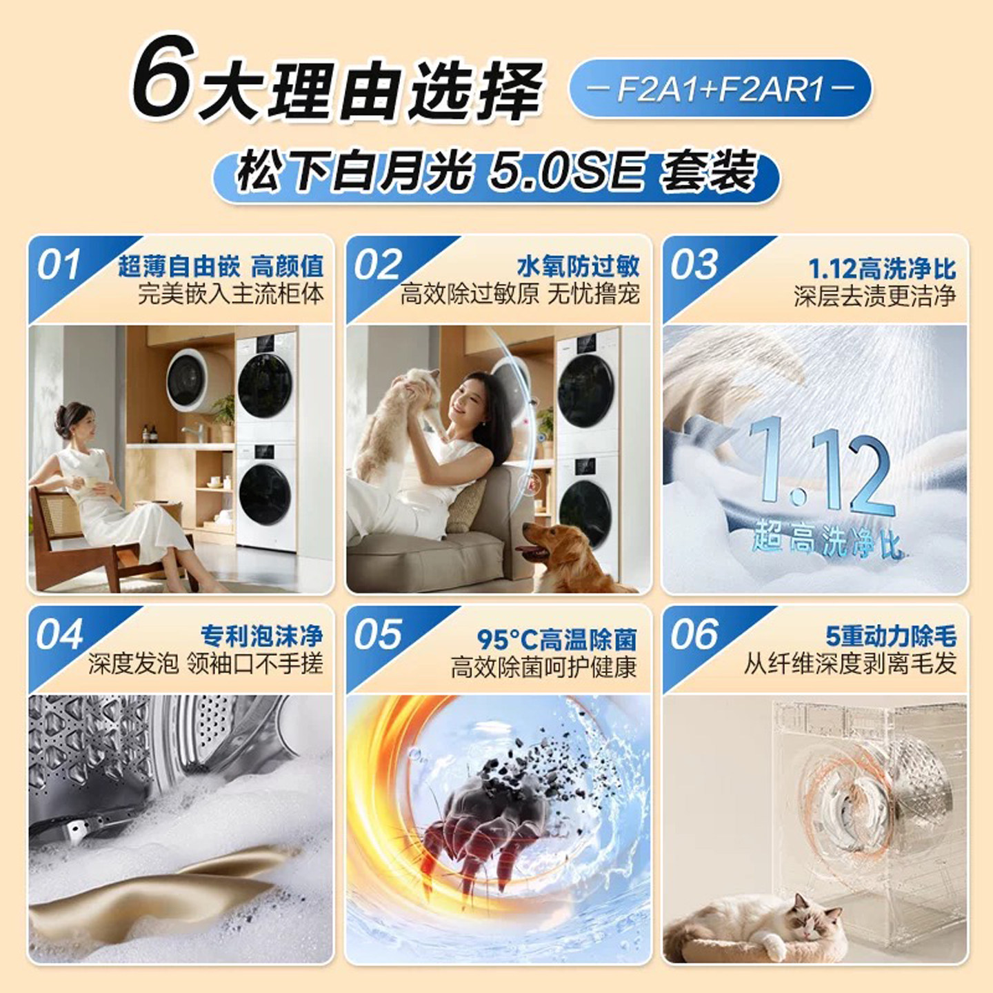 松下F2A1+F2AR1白月光5.0SE全嵌家用全自动洗烘套装热泵除菌除毛