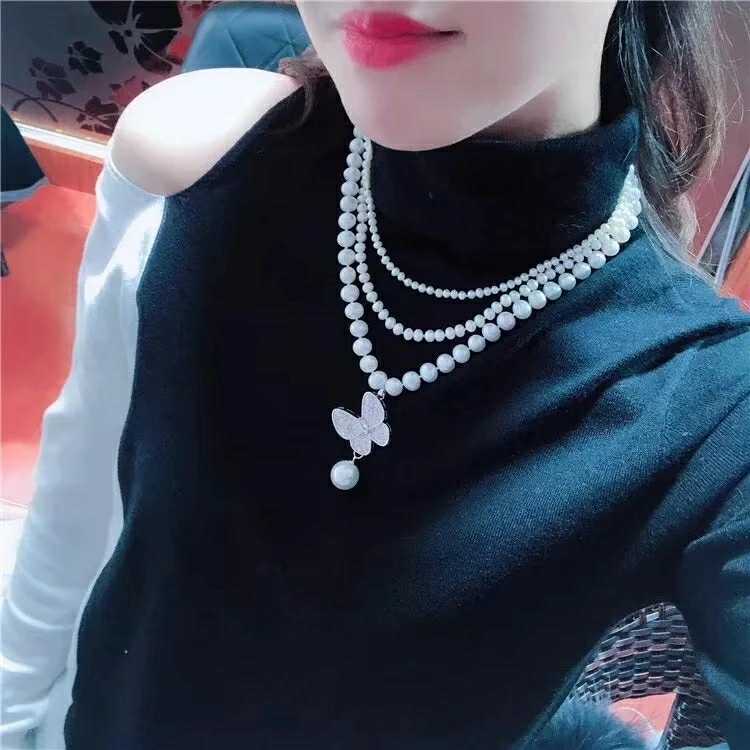日韩高档蝴蝶百搭长款珍珠项链