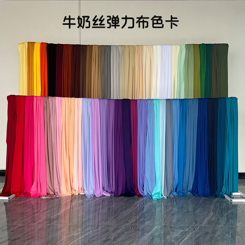 婚庆绿色背景纱幔布艺杏色牛奶丝弹力布紫色婚礼酒红超高背景布幔