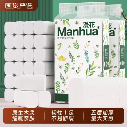 漫花卫生纸卷筒纸实惠装家用纸巾整箱囤货装5层无芯卷筒厕纸手纸