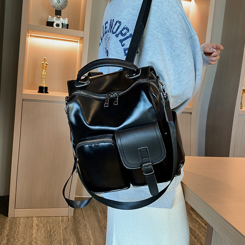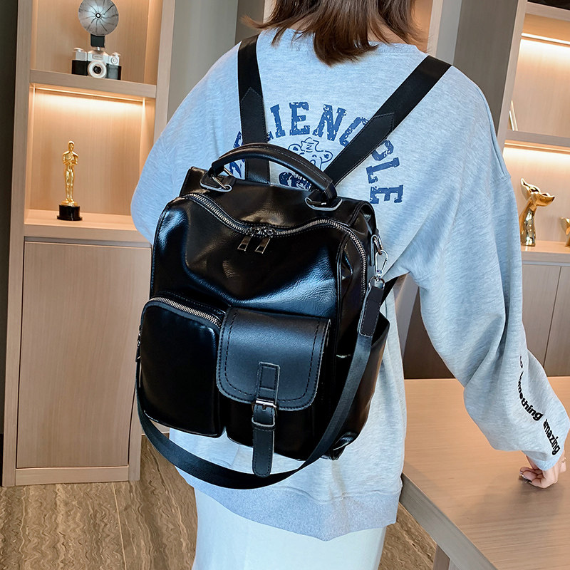 2024新款软皮复古双肩包女韩版多用校园背包女学生书包街头旅行包