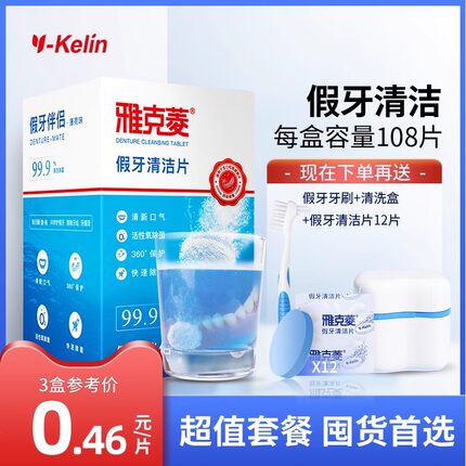 雅克菱假牙清洁片108片义齿清洗剂液器泡腾片保持器牙套清洁清洗