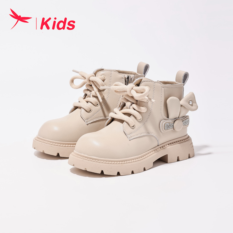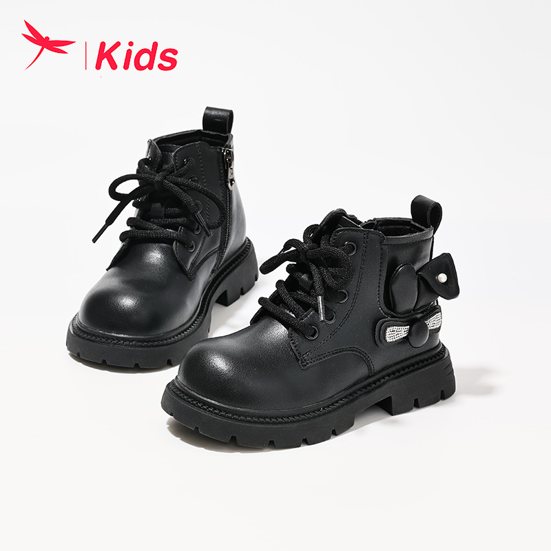 红蜻蜓女童鞋冬季新款烟筒靴儿童韩版时尚链条公主马丁靴加绒皮靴