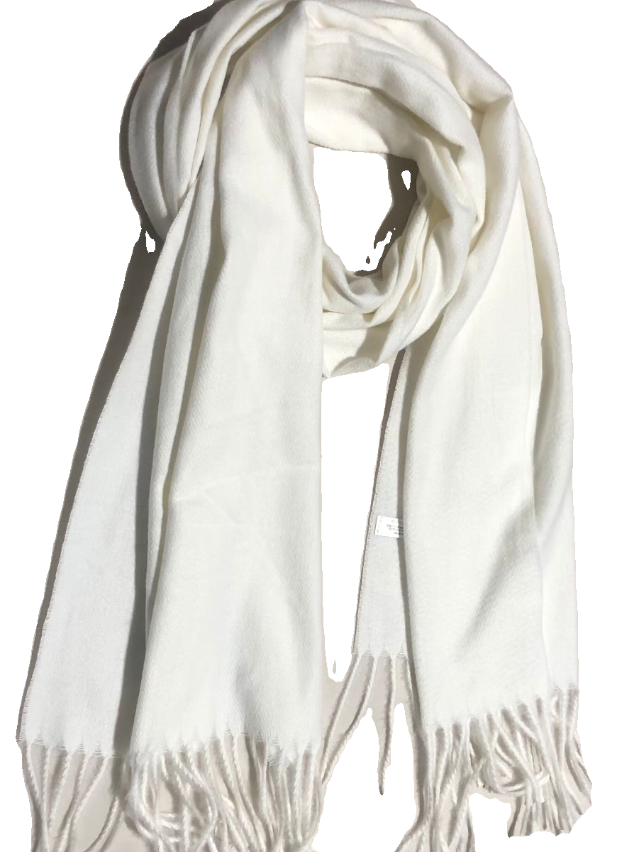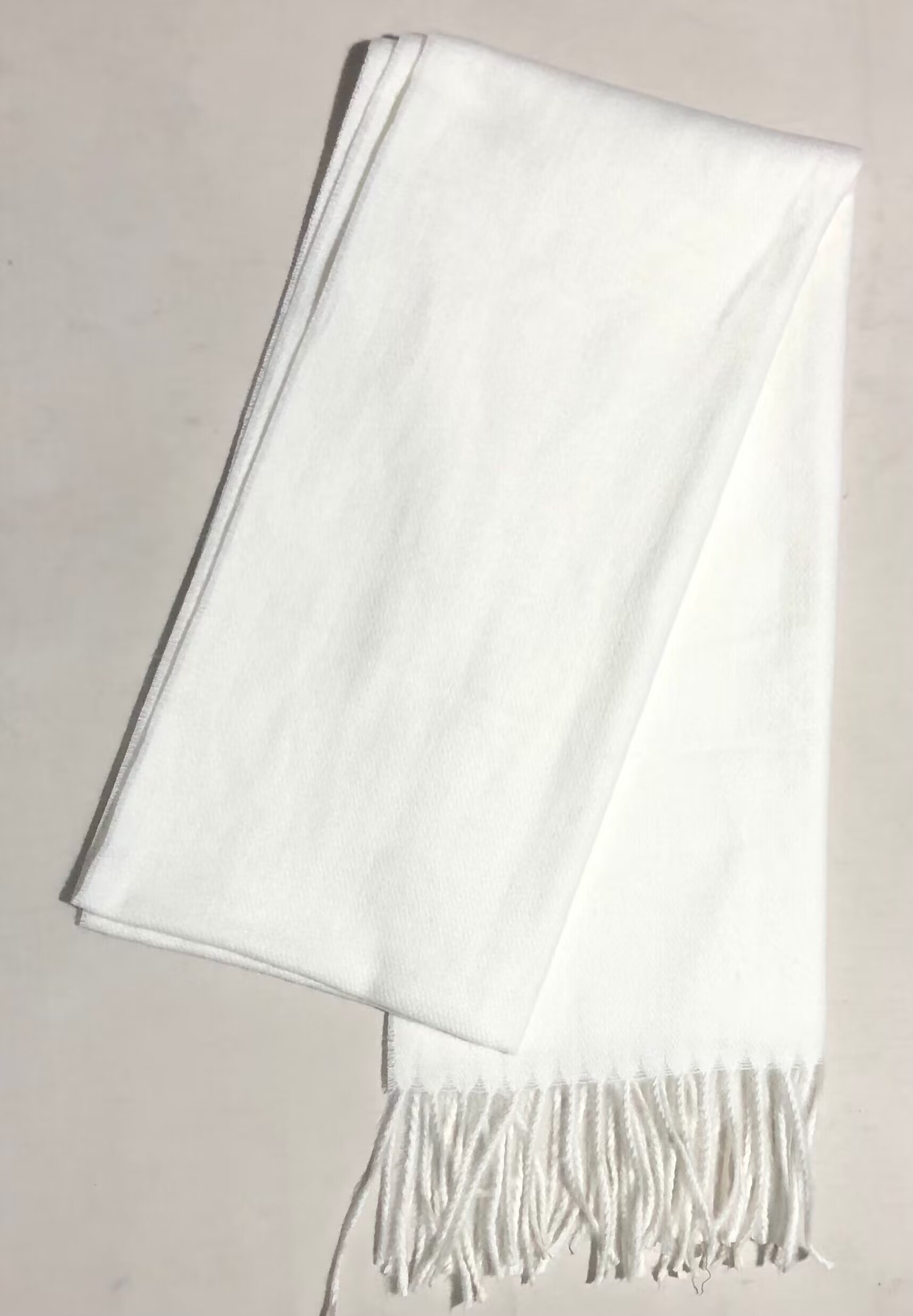 F612外贸纯白仿羊绒围巾冬季百搭保暖长款披肩两用190*46