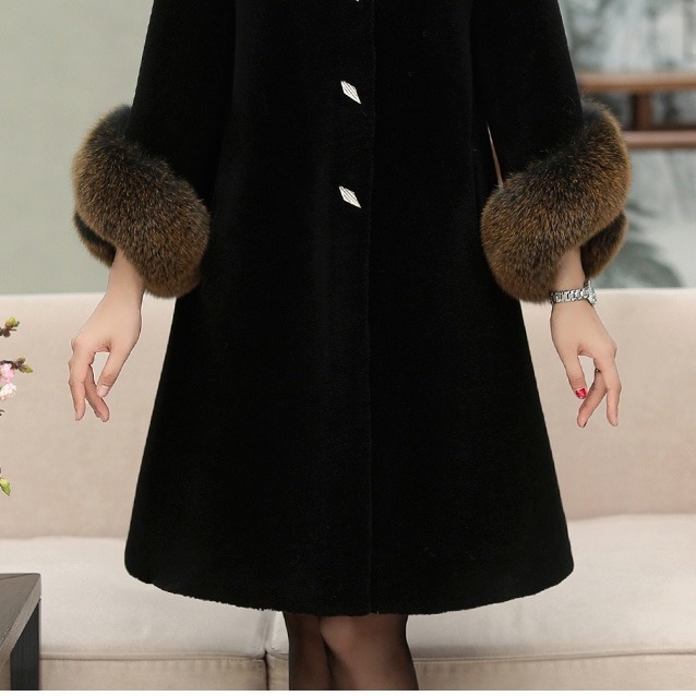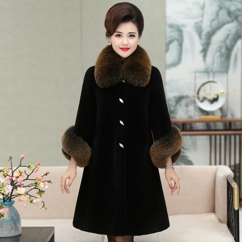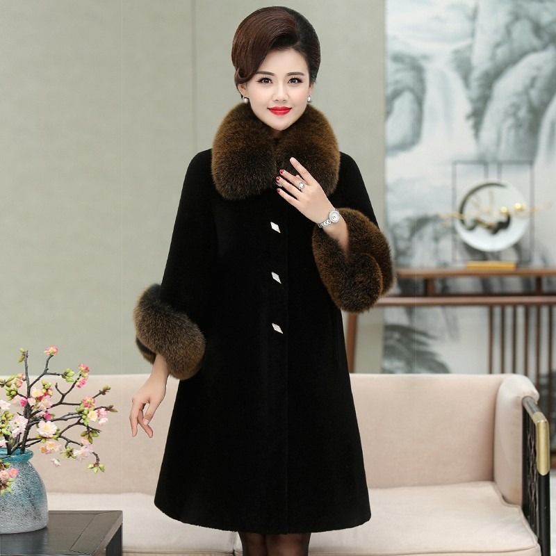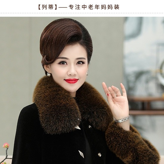 金貂绒大衣女中长款狐狸毛领妈妈装中老年水貂绒皮毛一体皮草外套