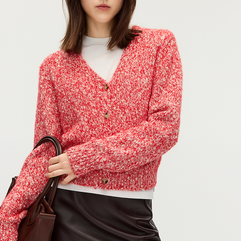 OCHIRLY欧时力 花式纱V领针织外套女慵懒风开衫上衣2025秋季新品