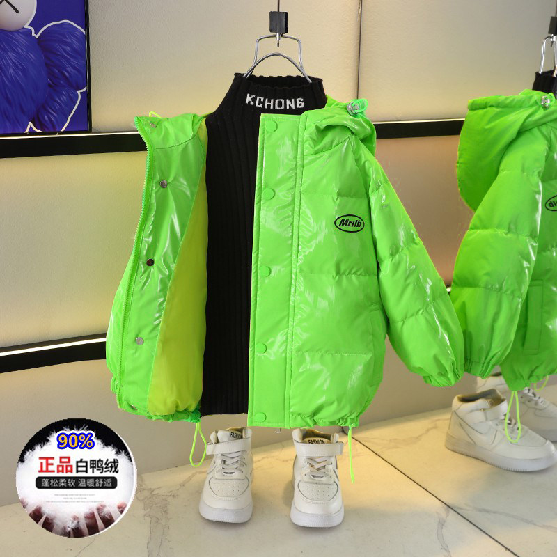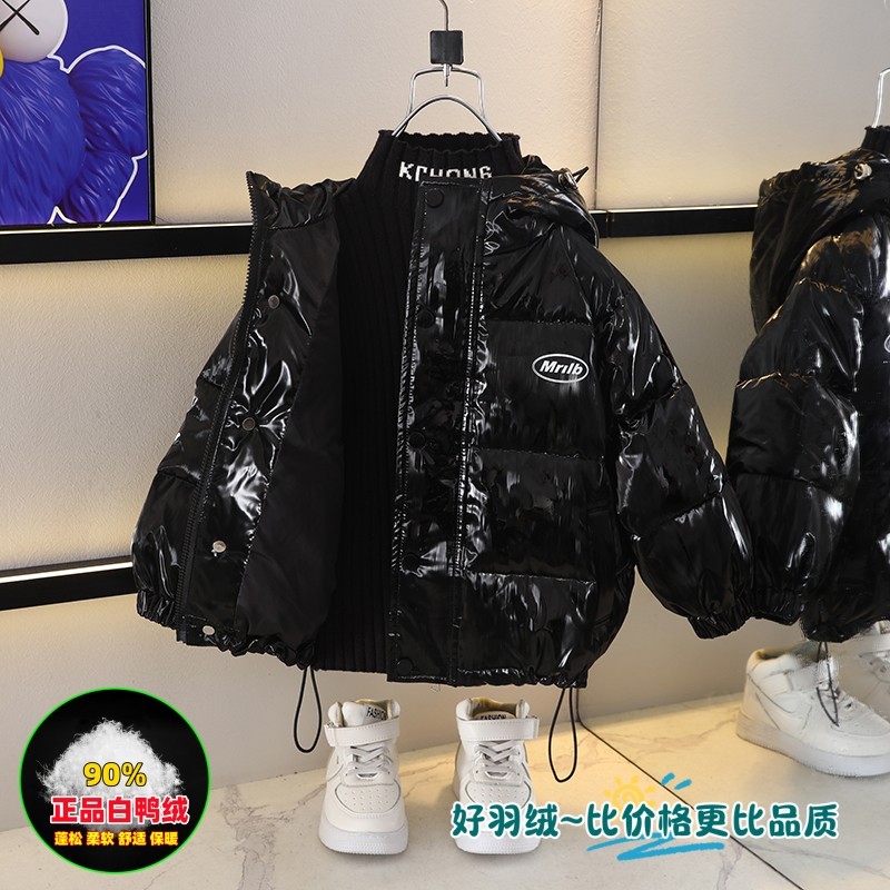 儿童羽绒服男童2025新款冬季免洗宝宝白鸭绒外套男孩亮面加厚冬装
