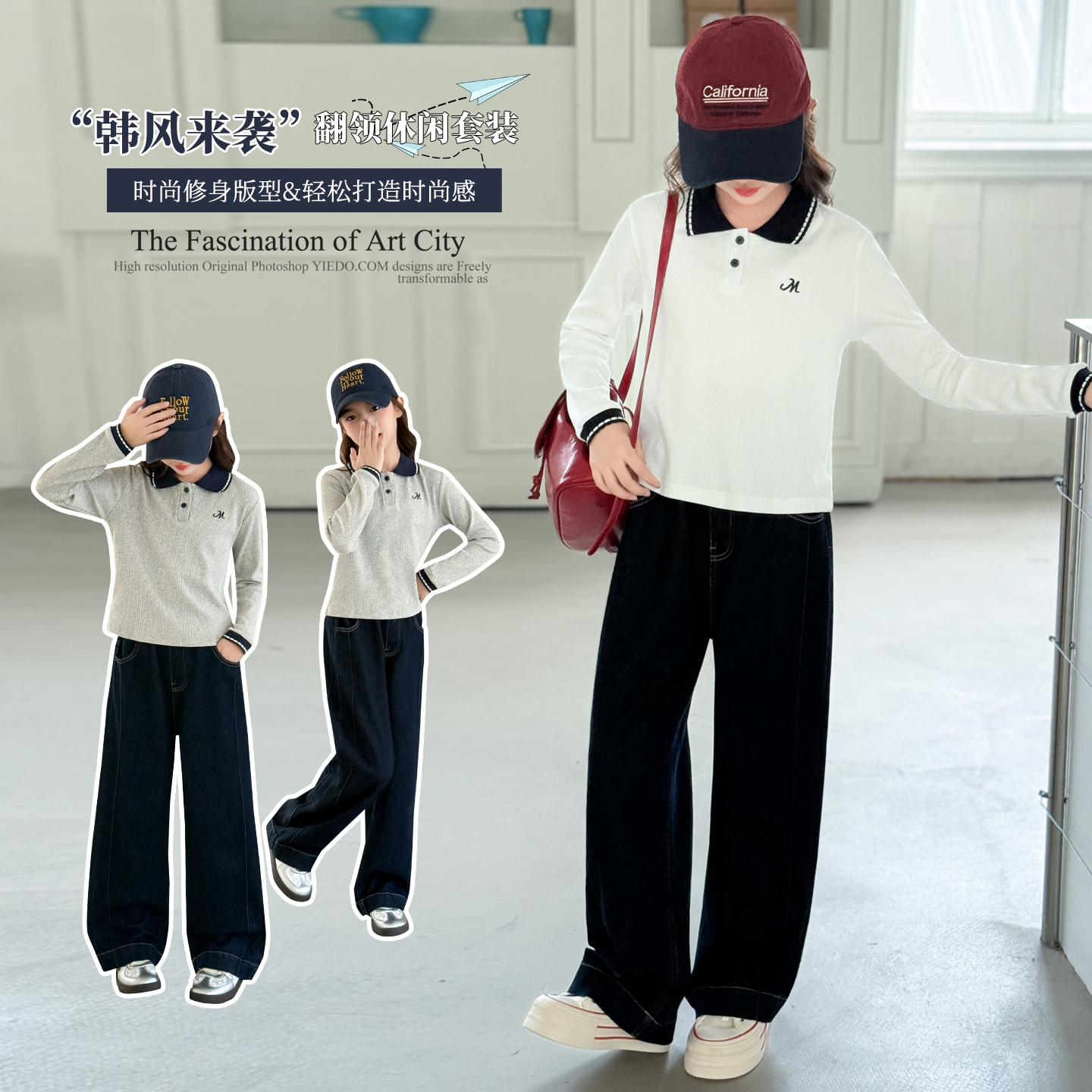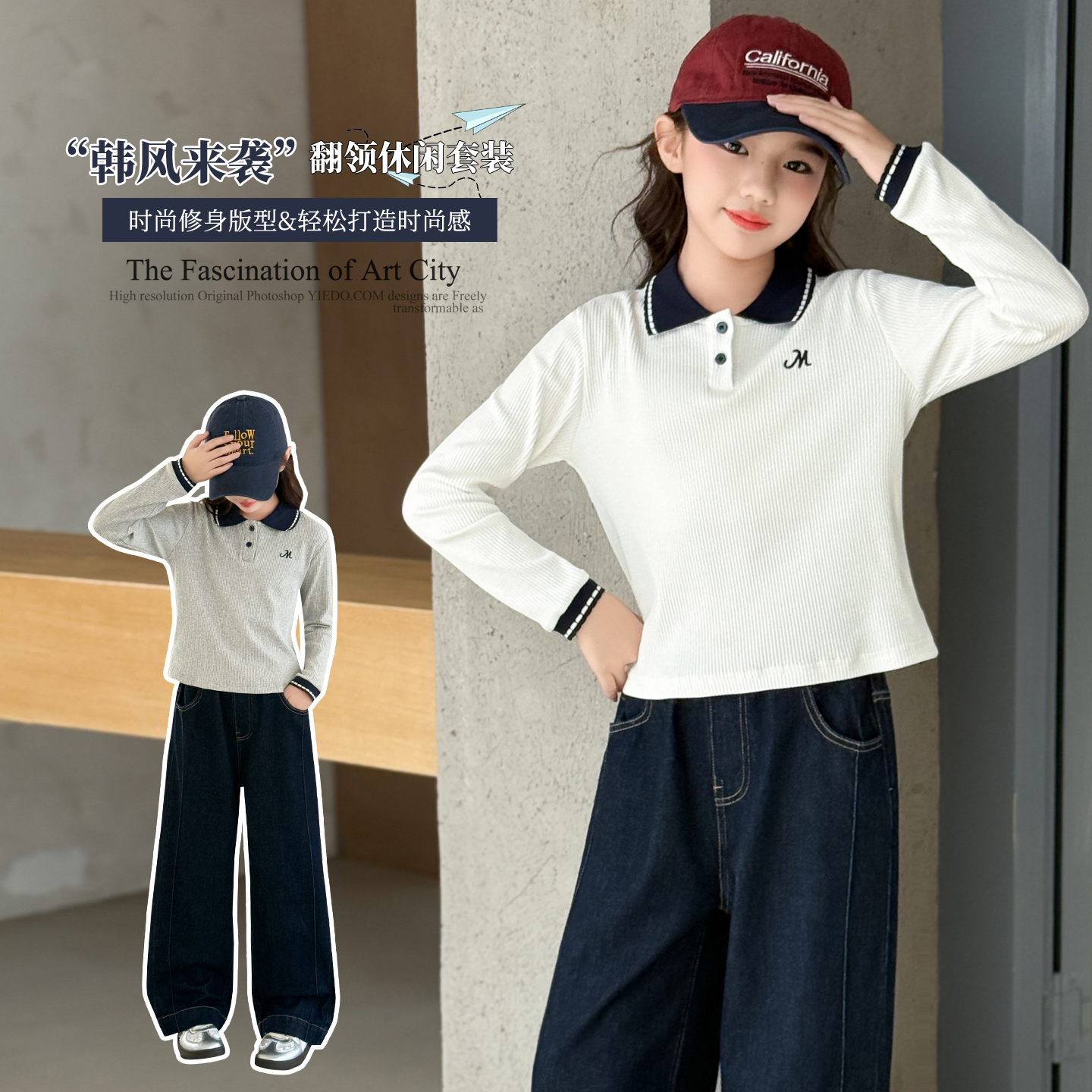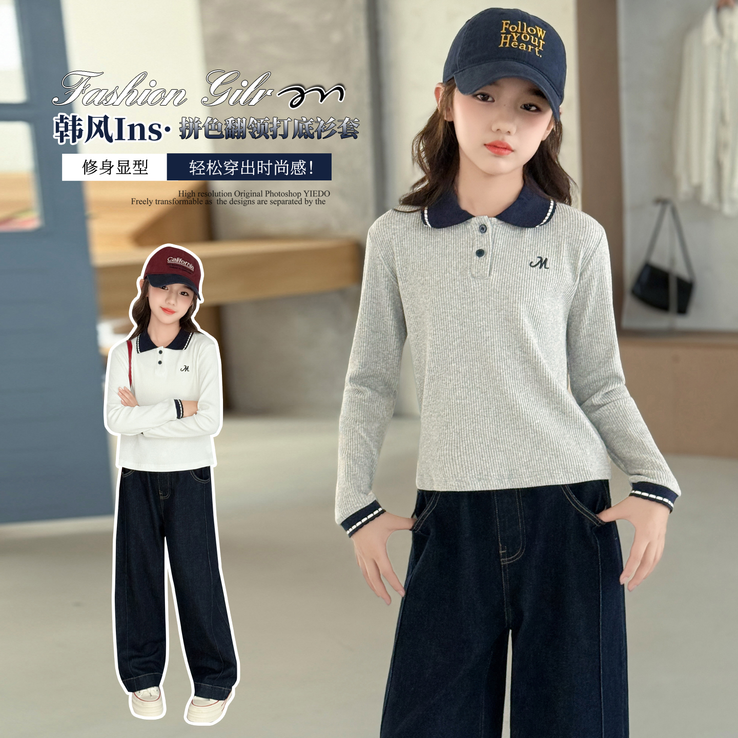 女童POLO衫长袖秋装2025新款