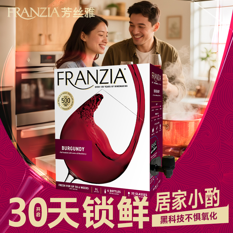 2盒装 FRANZIA红酒芳丝雅美国原盒进口红葡萄酒3L 半甜型袋装红酒