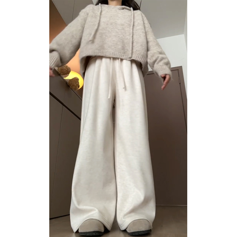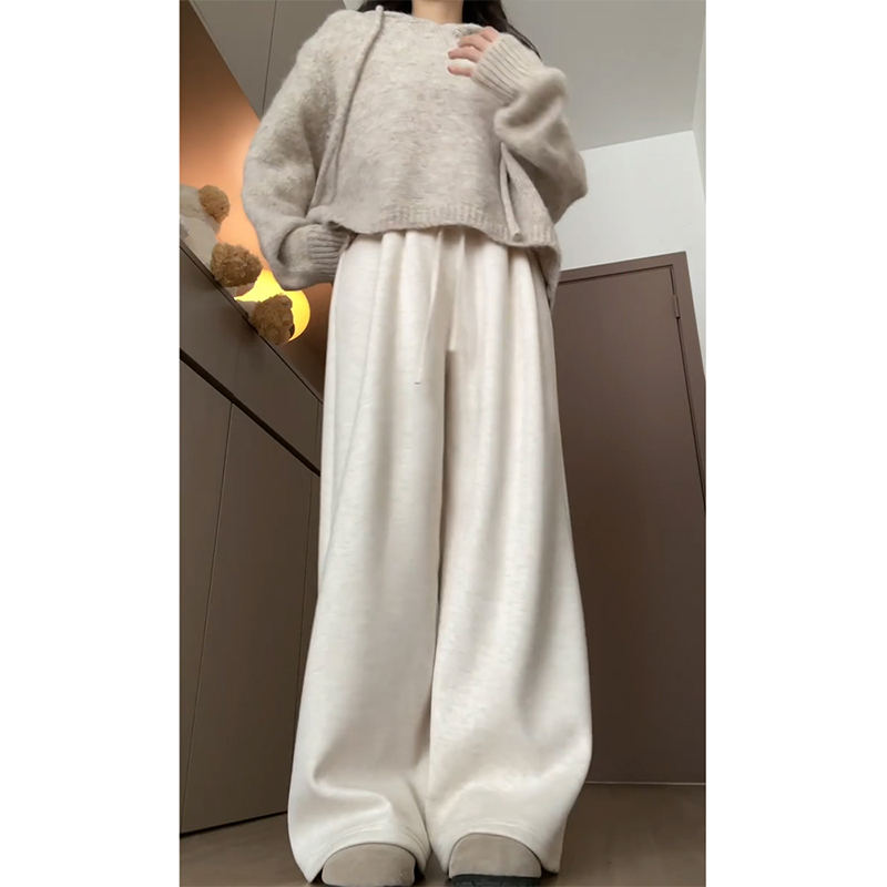 胖mm大码女装杏色羊羔毛加绒休闲裤女冬季保暖加厚杏色毛呢卫裤子