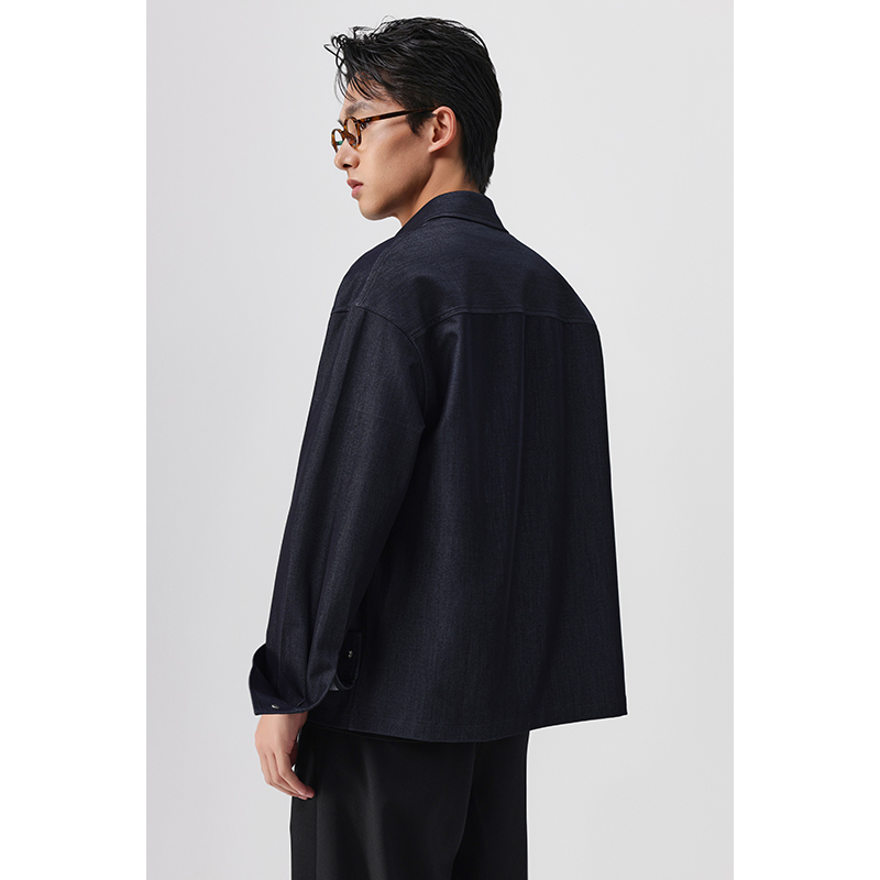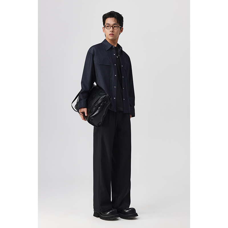 【储格】牛仔衬衫男暗口袋休闲长袖衬衣春季新款男士宽松上衣落肩