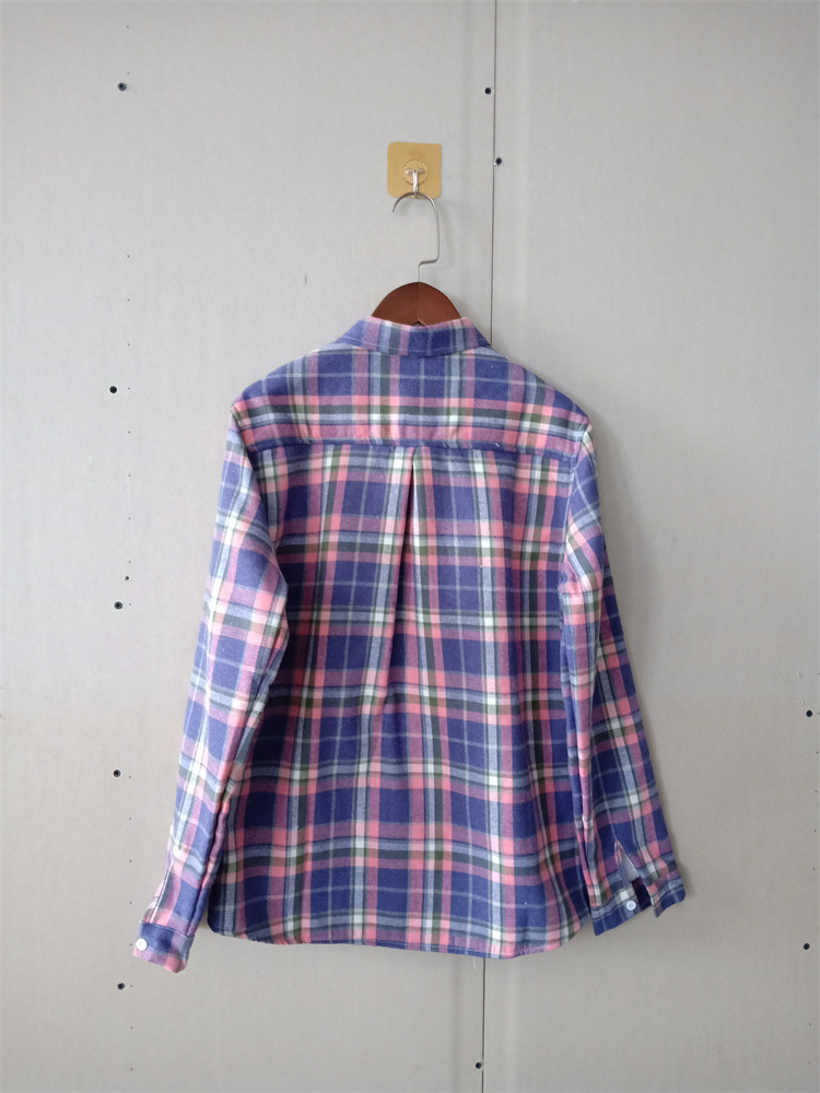 外贸新品秋冬女装 韩版休闲全棉格子加绒保暖方领长袖 女生衬衫