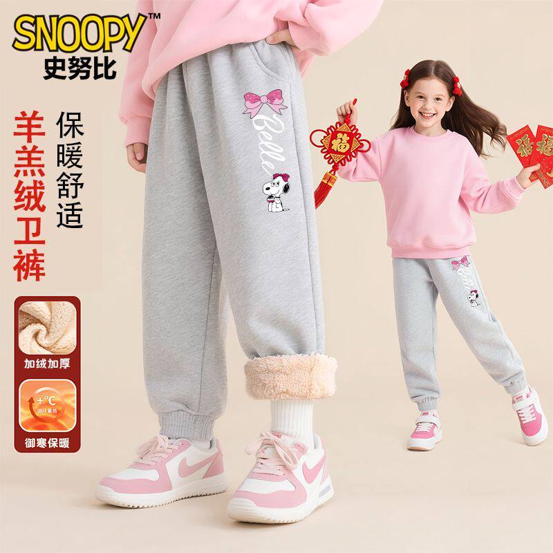 史努比女童加绒裤子女孩冬裤加绒卫裤羊羔绒裤儿童加厚棉裤冬新年
