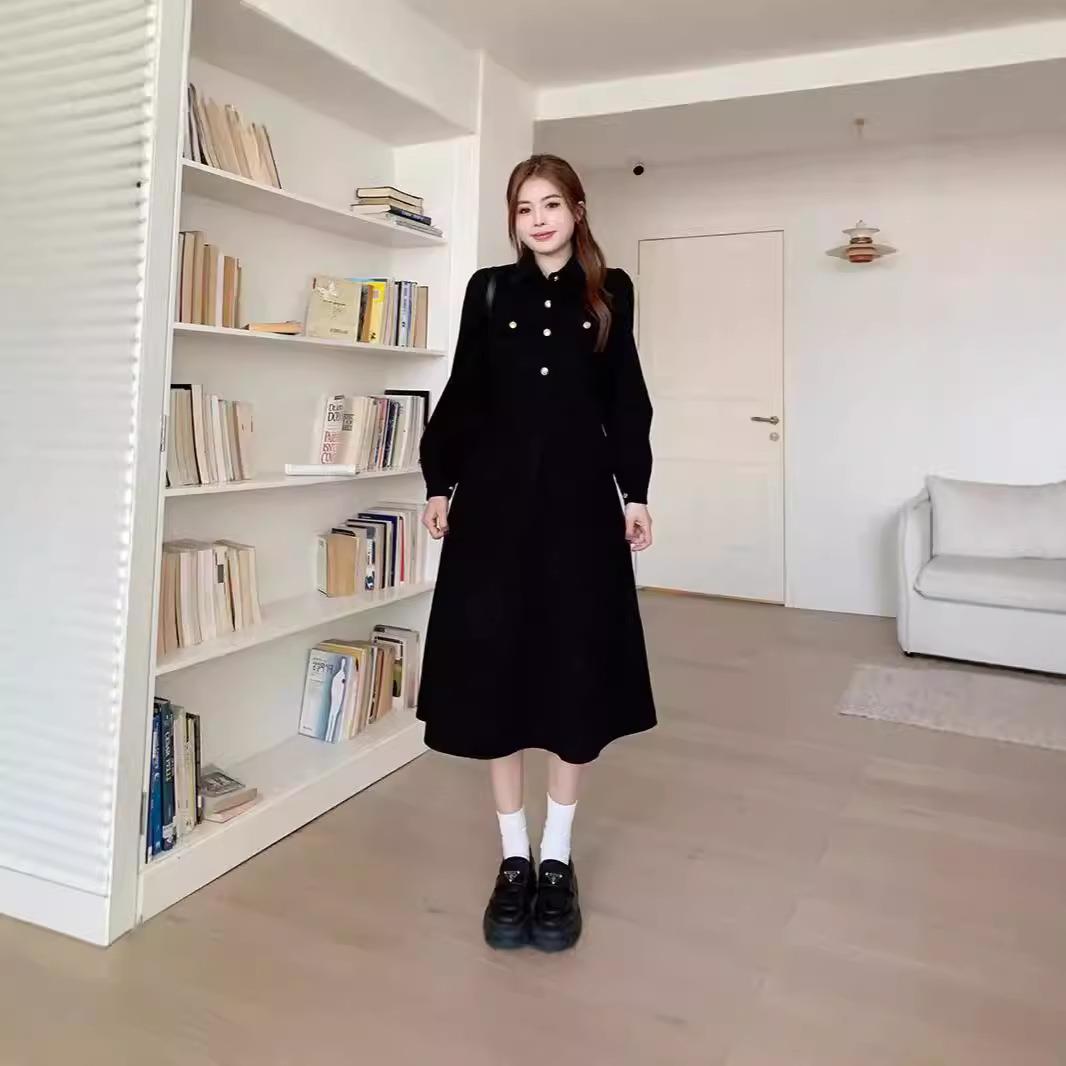 Polo领拼接单件连衣裙女秋冬新款复古高级感收腰显瘦气质中长裙