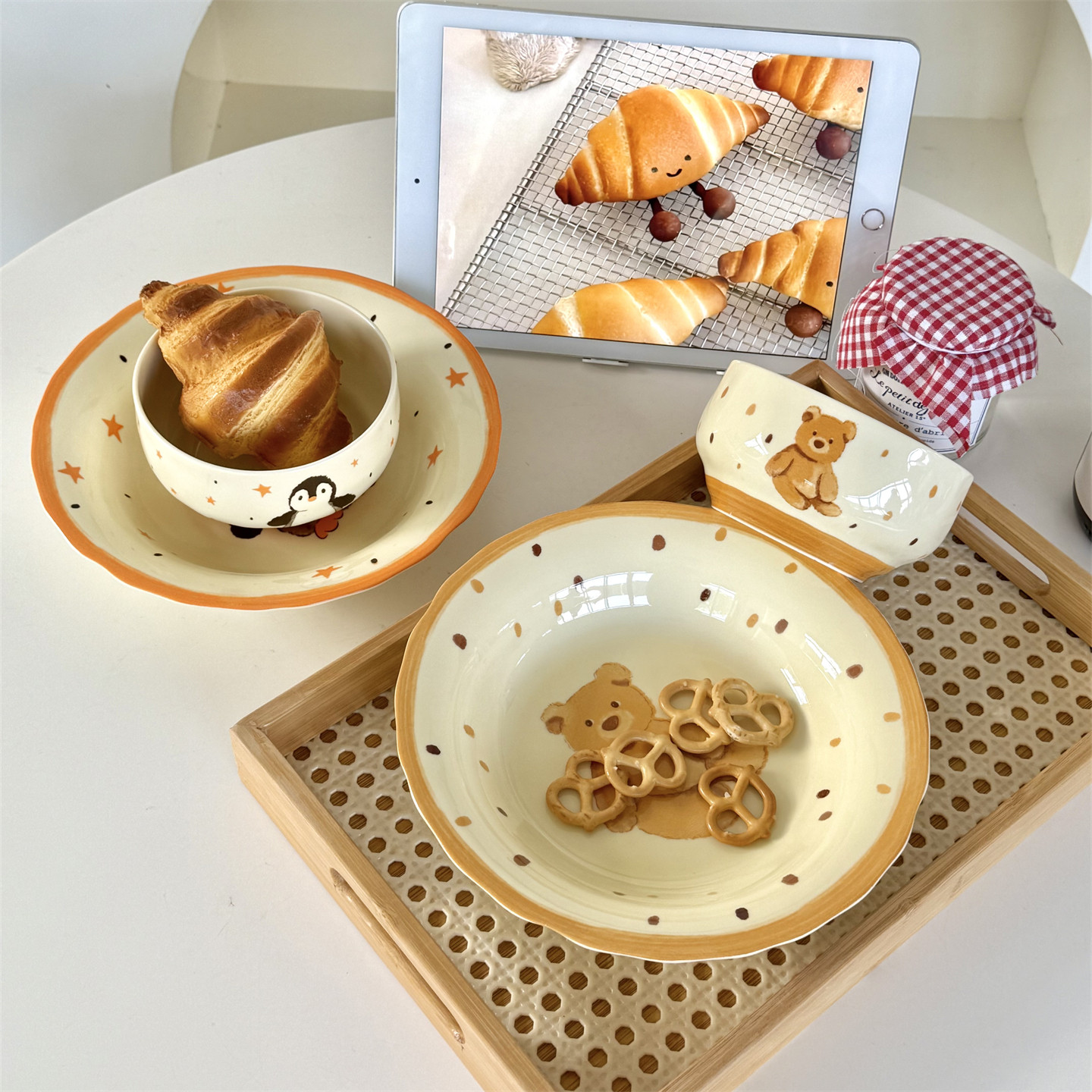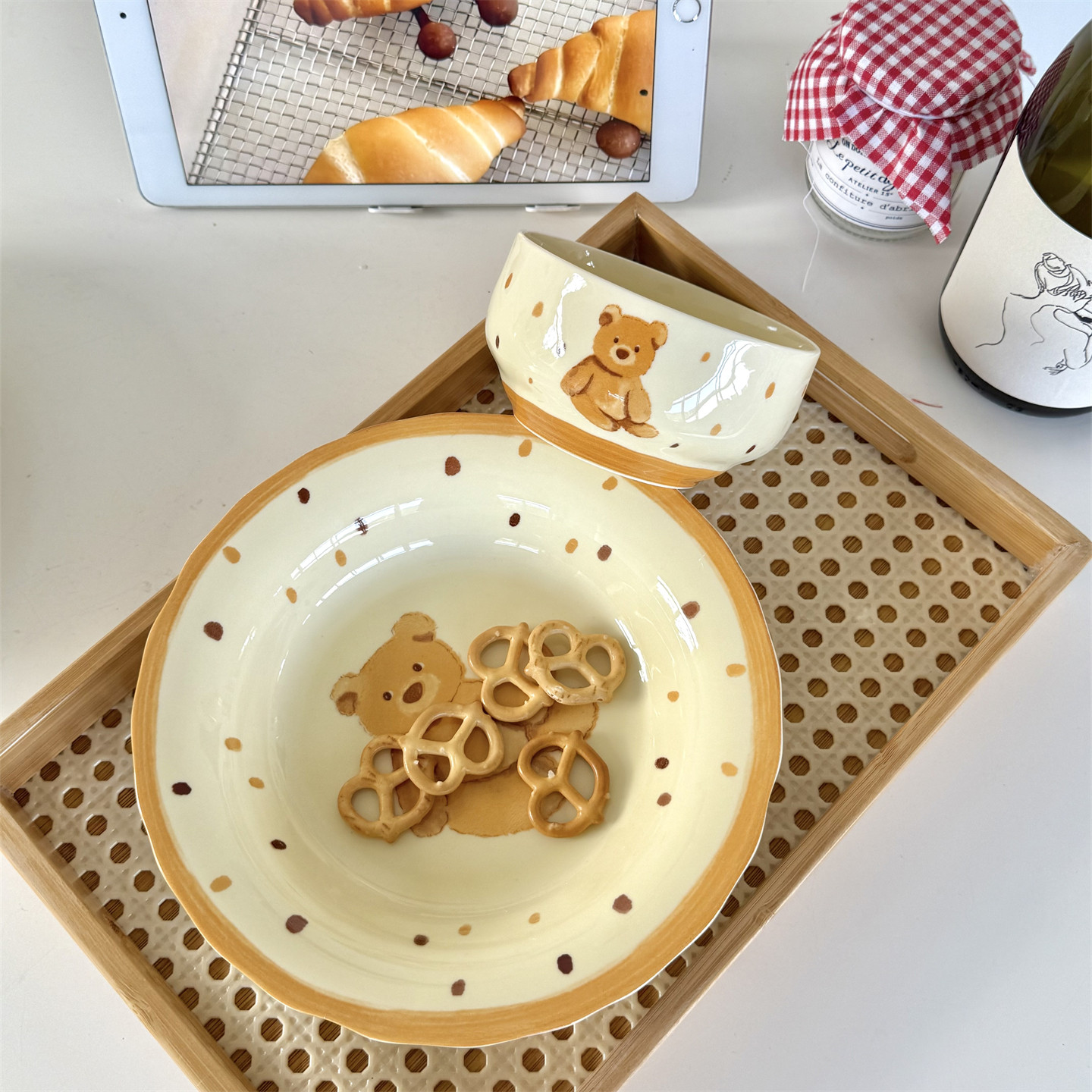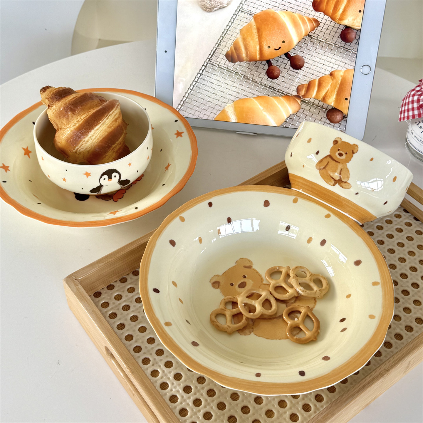高颜值好看的盘子小熊童趣陶瓷深盘水果盘点心盘早餐盘家用菜盘