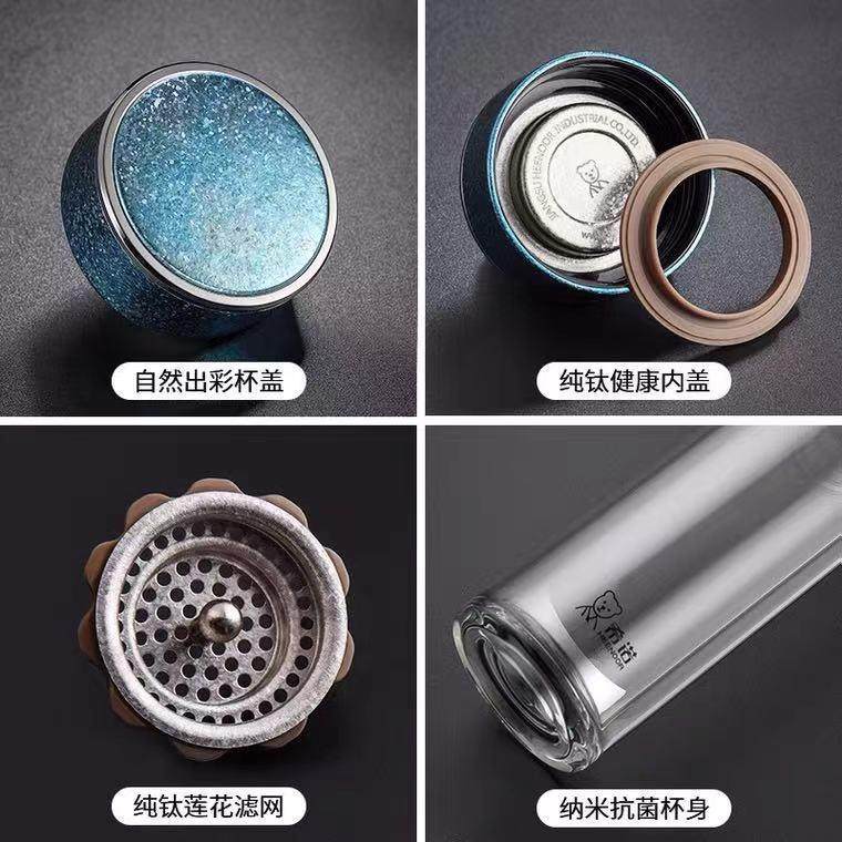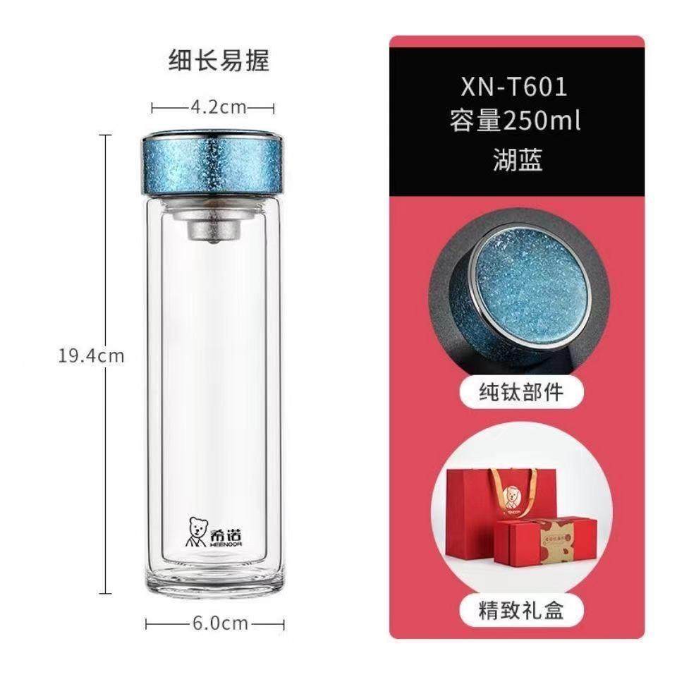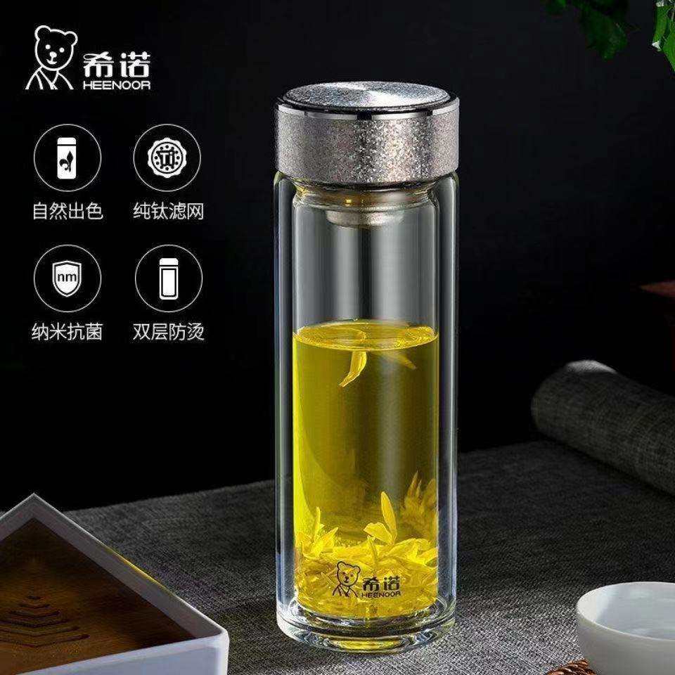 希诺玻璃杯双层隔热钛杯男女士杯子泡茶简约便携茶杯
