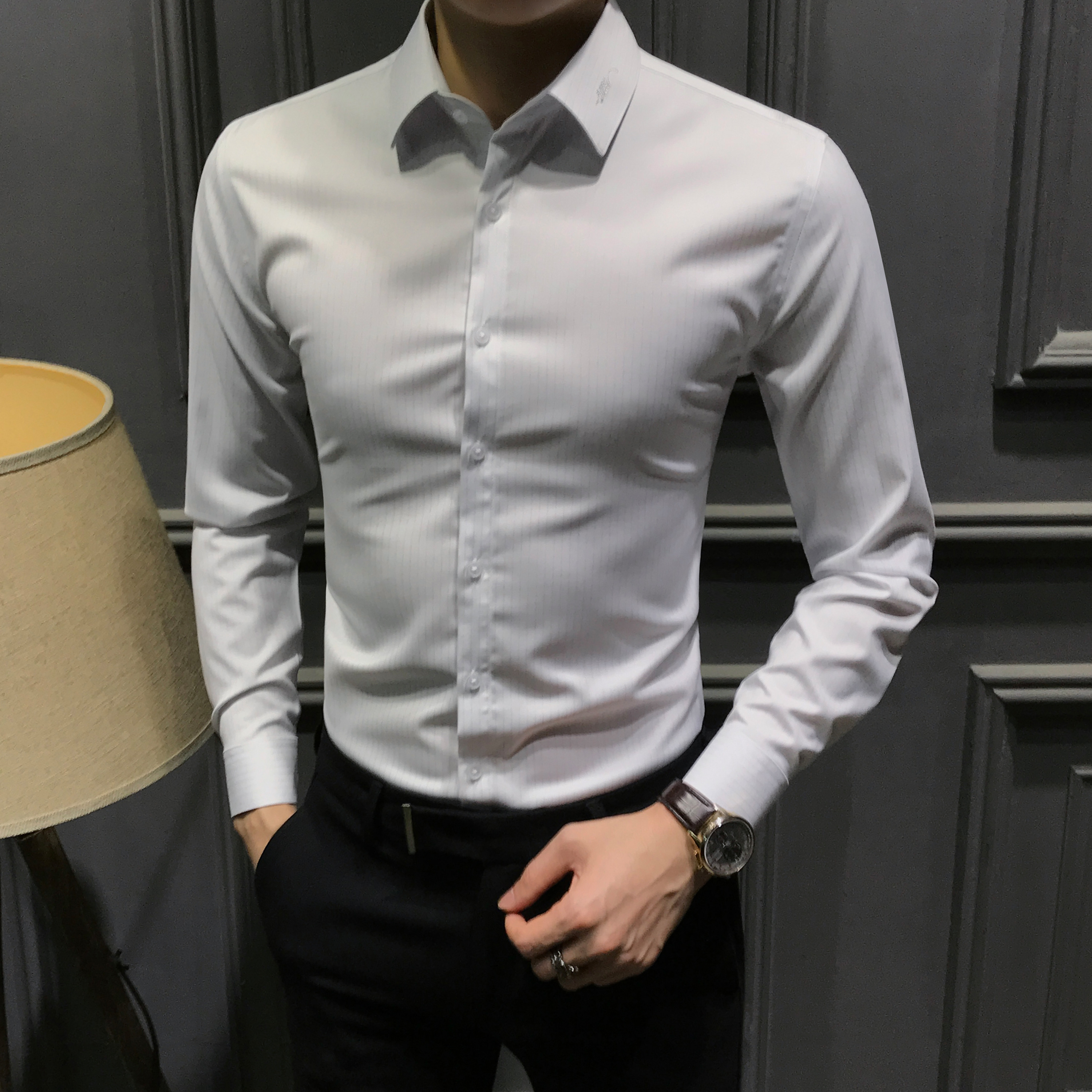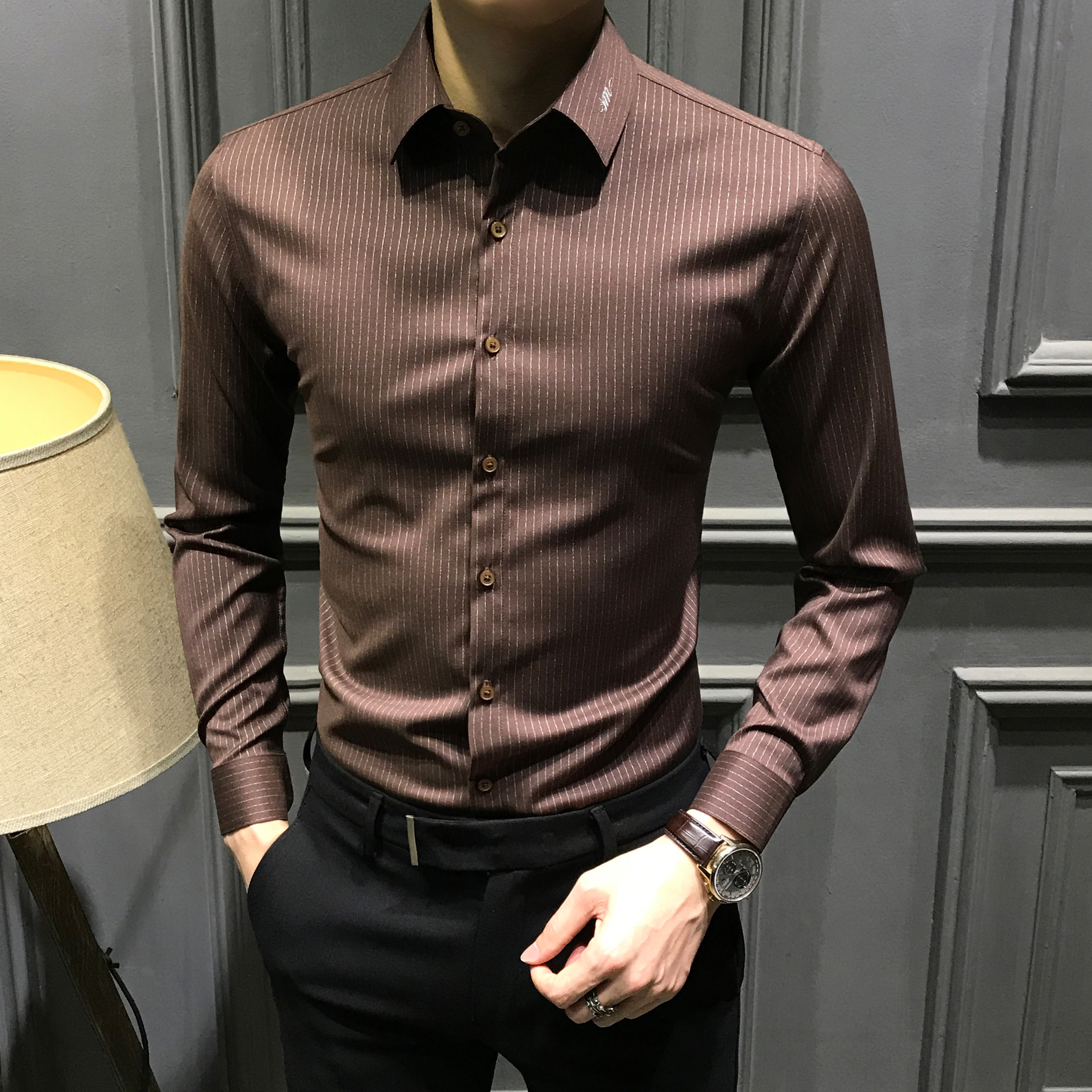 秋季条纹男士长袖衬衫2025新款修身休闲商务衬衣潮流百搭上衣免烫